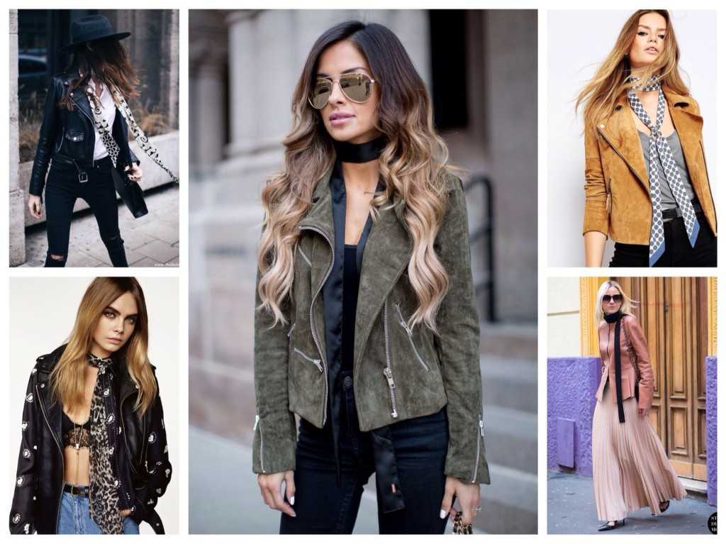 А вот кожаные курточки лучше дополнить шарфами, выполненными из лёгких струящихся тканей.