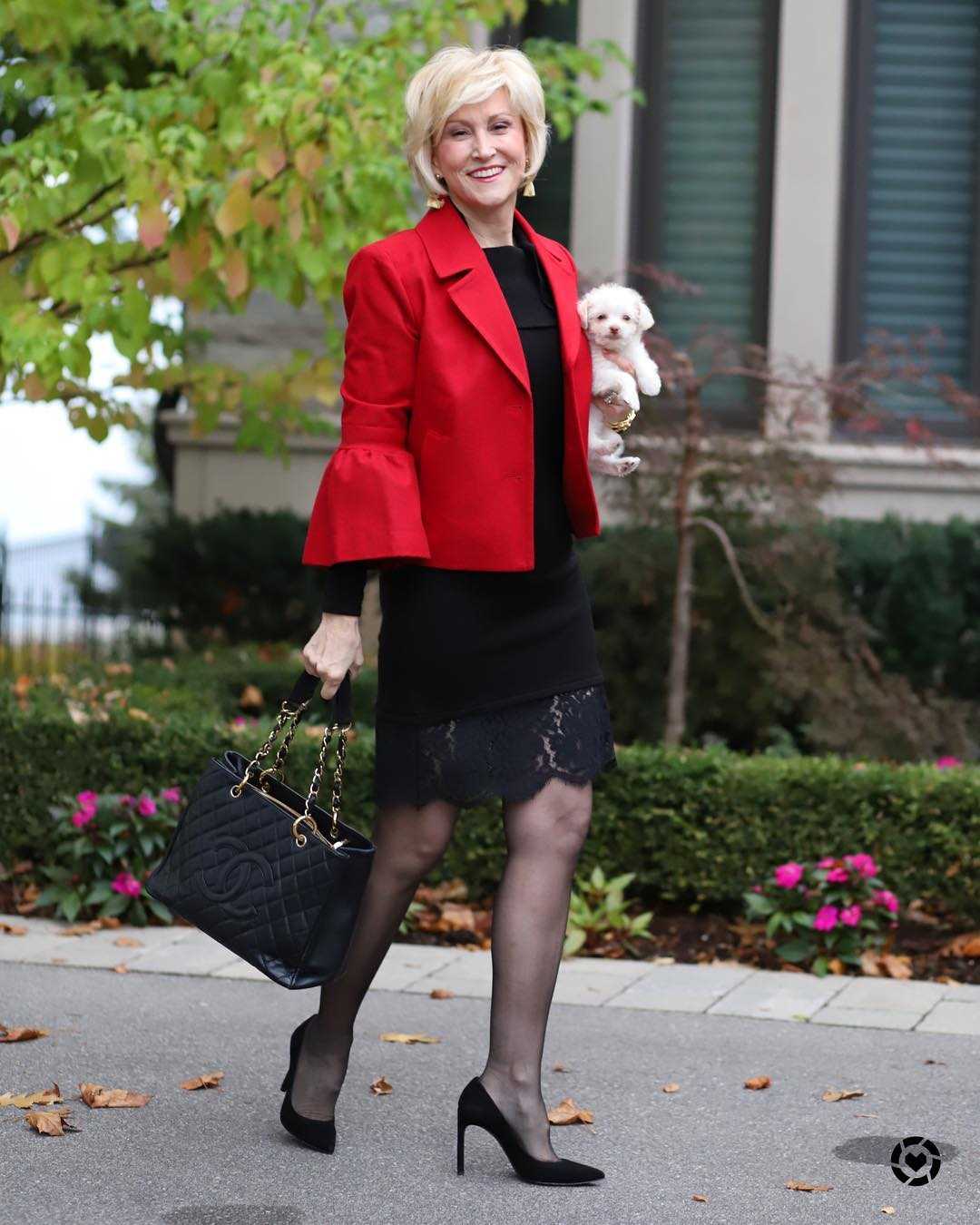 Дамам старше 50 лет лучше отказаться от встречи Нового года в классических костюмах. Все-таки, это праздник и хочется выглядеть в этот вечер нарядно, женственно. Деловой стиль можно примерить и в обычной жизни.