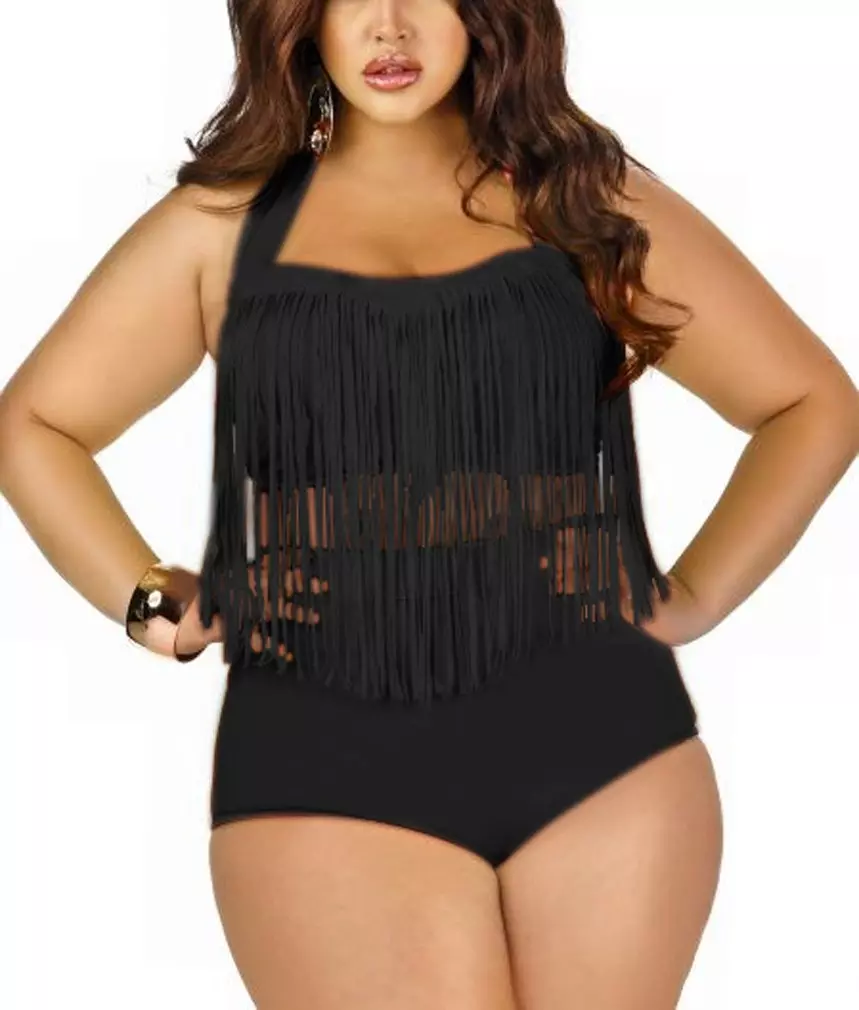 - Слитный купальник с бахромой станет прекрасным и очень стильным элементом в создании лука для пляжной вечеринки.