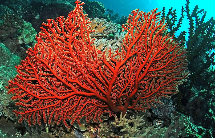 Коралл — это образование из известковой массы скелетов морских животных, которые своей жизнедеятельностью больше напоминают растения. Эти живые создания называют полипами. Они обитают в известковой оболочке и размножаются почкованием. Когда ответвляется новый организм, старая оболочка становится твердой, и ее заселяют новые полипы. Так и образуются многочисленные колонии, распространяющиеся на тысячи километров прибрежной территории морей и океанов.