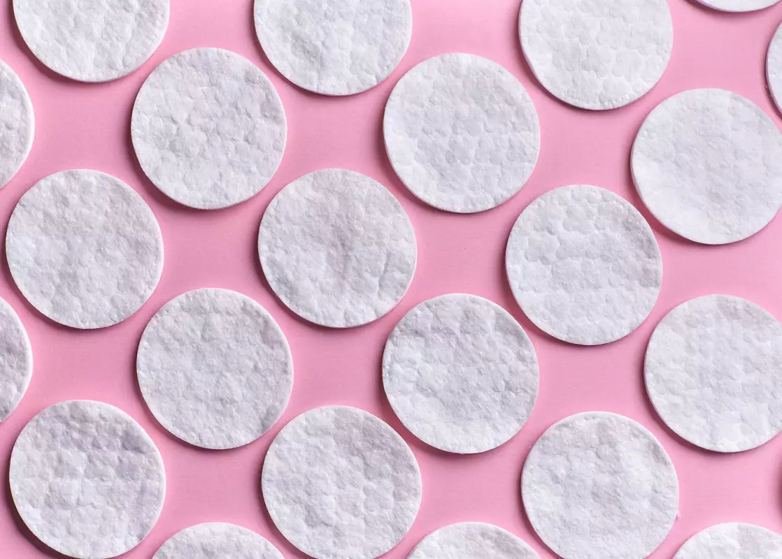 - Смочить в используемом косметическом продукте ватный диск.