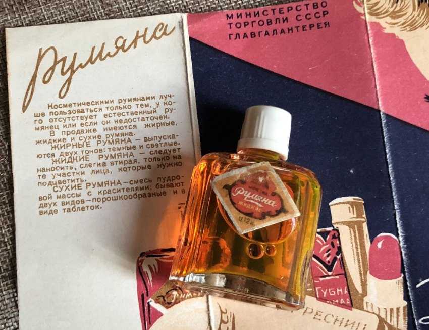 В 70-80-е гг. в косметичках советских женщин чаще всего встречались лишь сухие компактные, либо жирные румяна, расфасованные по маленьким баночкам или большого размера тубам, напоминающих гигантские губные помады. Иногда в качестве румян использовалась и сама помада (или ее остатки, которые доставали из тюбика спичкой).