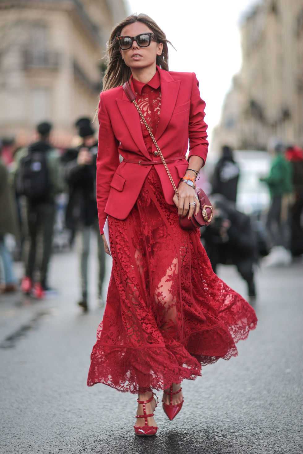 Сумочка правильного цвета – альфа и омега для red dress look. Если вы не планируете использовать верхнюю одежду контрастного цвета, то от совпадения оттенка сумочки с платьем лучше отказаться, так как она попросту потеряется на его фоне. Но если уж вы по каким-то причинам решились на total red, выбирайте чуть приглушенные или грязноватые цвета, чтобы не выглядеть аляповато. Кроме того, здесь оправдано использовать контраст фактур, коль скоро цветовой фон однородный, так что это неплохой вариант с чем носить красное гипюровое платье.