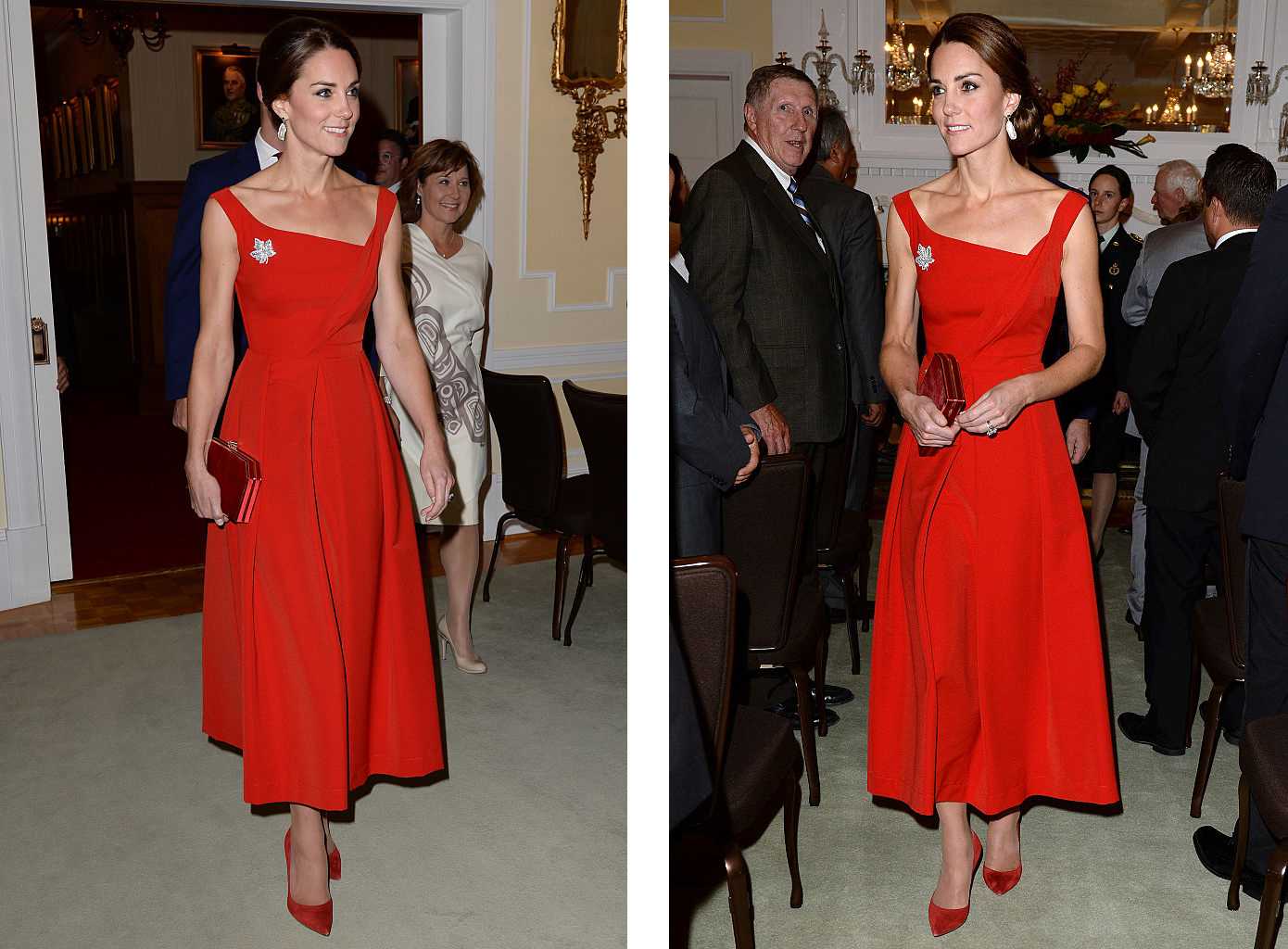 Все акценты вашего red look расставит цвет, поэтому глубокие декольте и откровенные разрезы в данном случае не уместны. Размышляя, какие туфли надеть с красным платьем, взгляните на икону этого образа – Кейт Миддлтон. Оттенок и фактура ее обуви с сумочкой слегка отличаются от ткани платья.