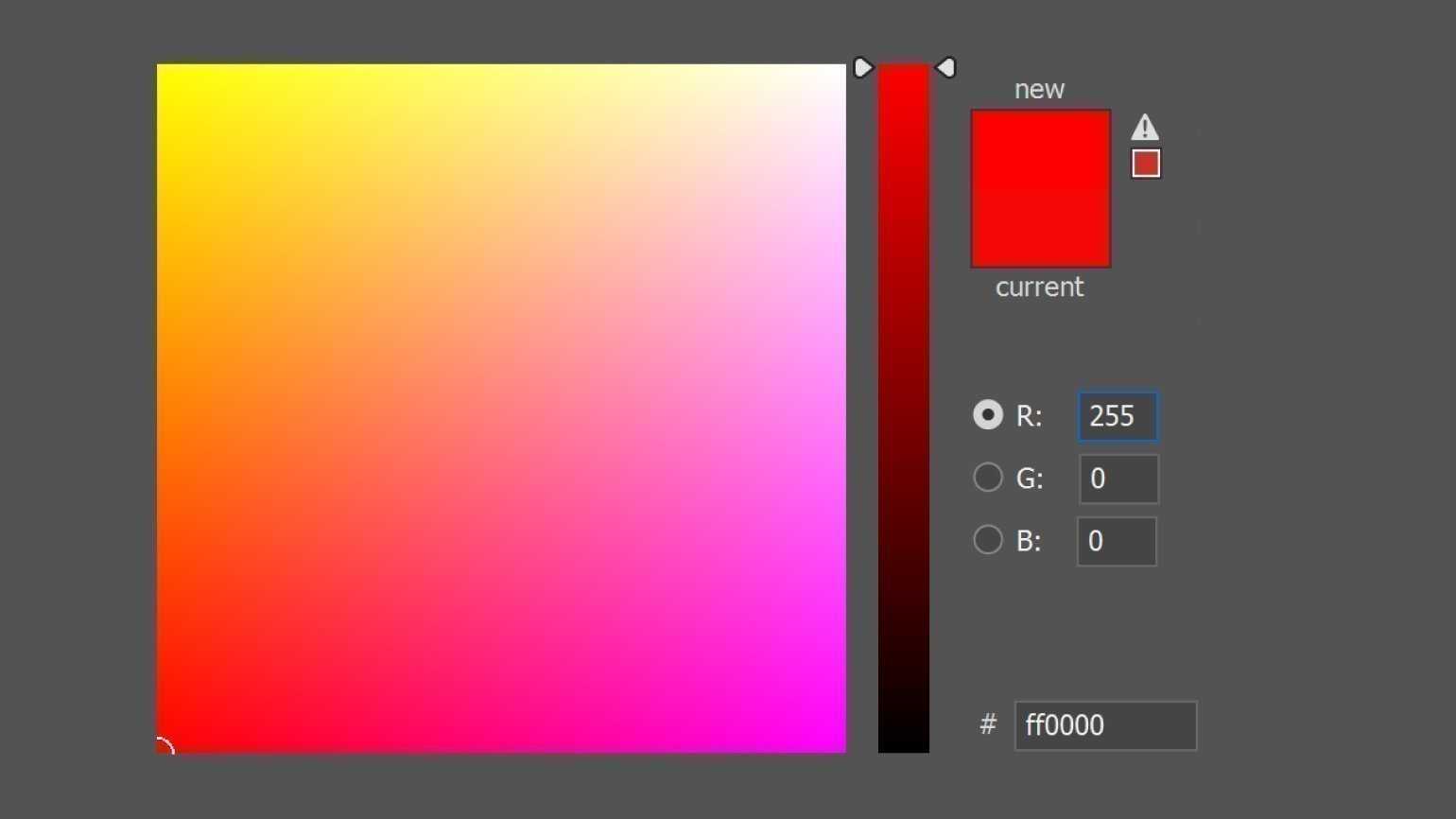 Для наглядности посмотрим, как получить ярко-красный цвет в пространстве RGB. Для этого нужно высокое значение по шкале R и низкие значения по двум другим: