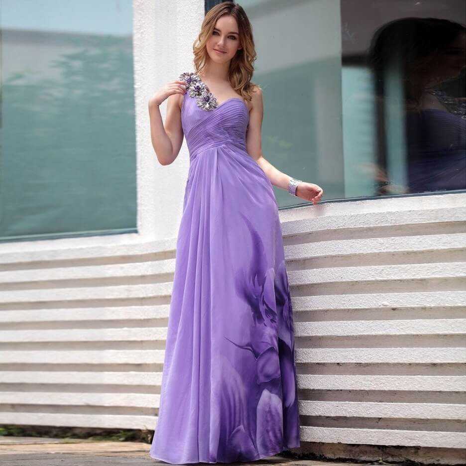 Попытаемся определить, кому же подходят новинки платьев фиолетового цвета. Фиолетовый цвет относится к сложным, поэтому к подбору наряда данного цвета надо подходить основательно. В первую очередь, определяем цветотип вашей внешности. Женщинам с темными волосами и карими или серыми глазами подойдут насыщенные темные тона фиолетового. Платье такого оттенка очень хорошо сочетается со смуглой кожей, а ваши глаза станут еще выразительней. А в платье лилового цвета будут выглядеть неотразимо рыжеволосые с зелеными или серыми глазами девушки. Более светлый тон фиолетового платья подчеркнет красоту блондинок.