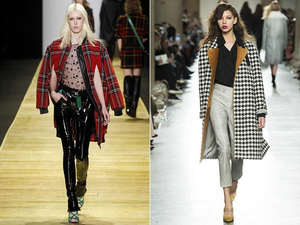Снова в моде нестареющий клетчатый узор. В этом сезоне он представлен настолько разнообразными размерами, цветами и их сочетаниями, что придется по вкусу многим модницам. Единственное, что объединяет все модели в клетку – это фасон пальто. Он должен быть обязательно свободного кроя, а длина допускается любая. Как и раньше в значительном количестве представлены пальто с классической черно-белой клеткой, поддерживаемой многими модными дизайнерами, такими как Preen by Thornton Bregazz, Mother of Pearl, Isa Arfen, Calvin Klein. А размеры клетки варьируются от мелкого рисунка до крупных геометрических фигур. Допускается и сочетание клетки разных размеров в одном изделии.