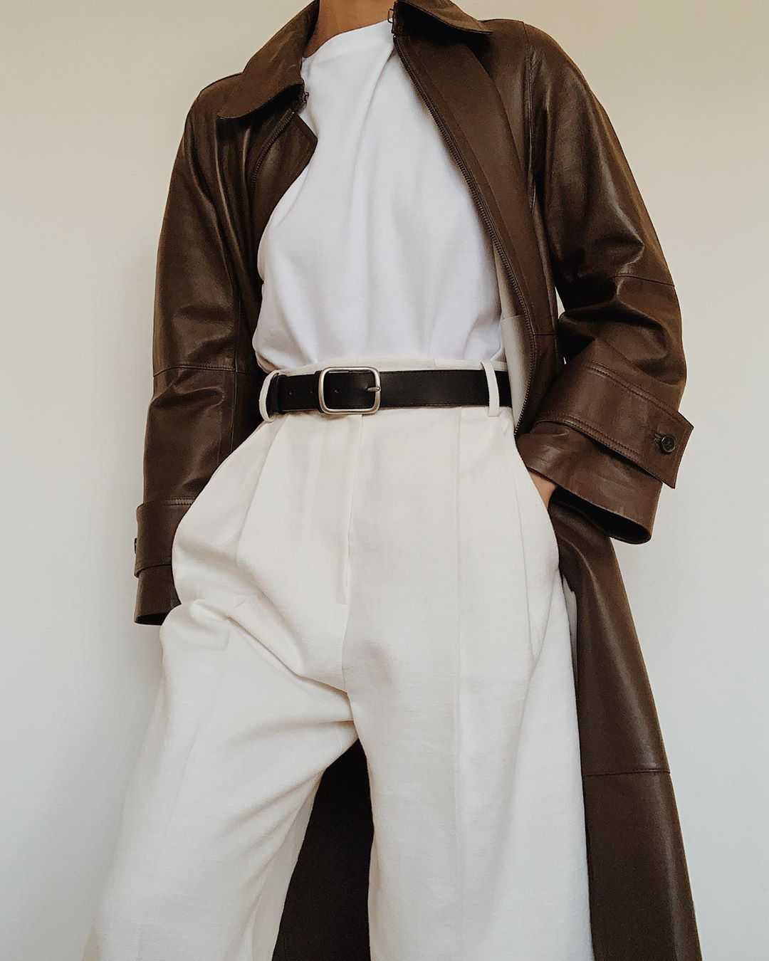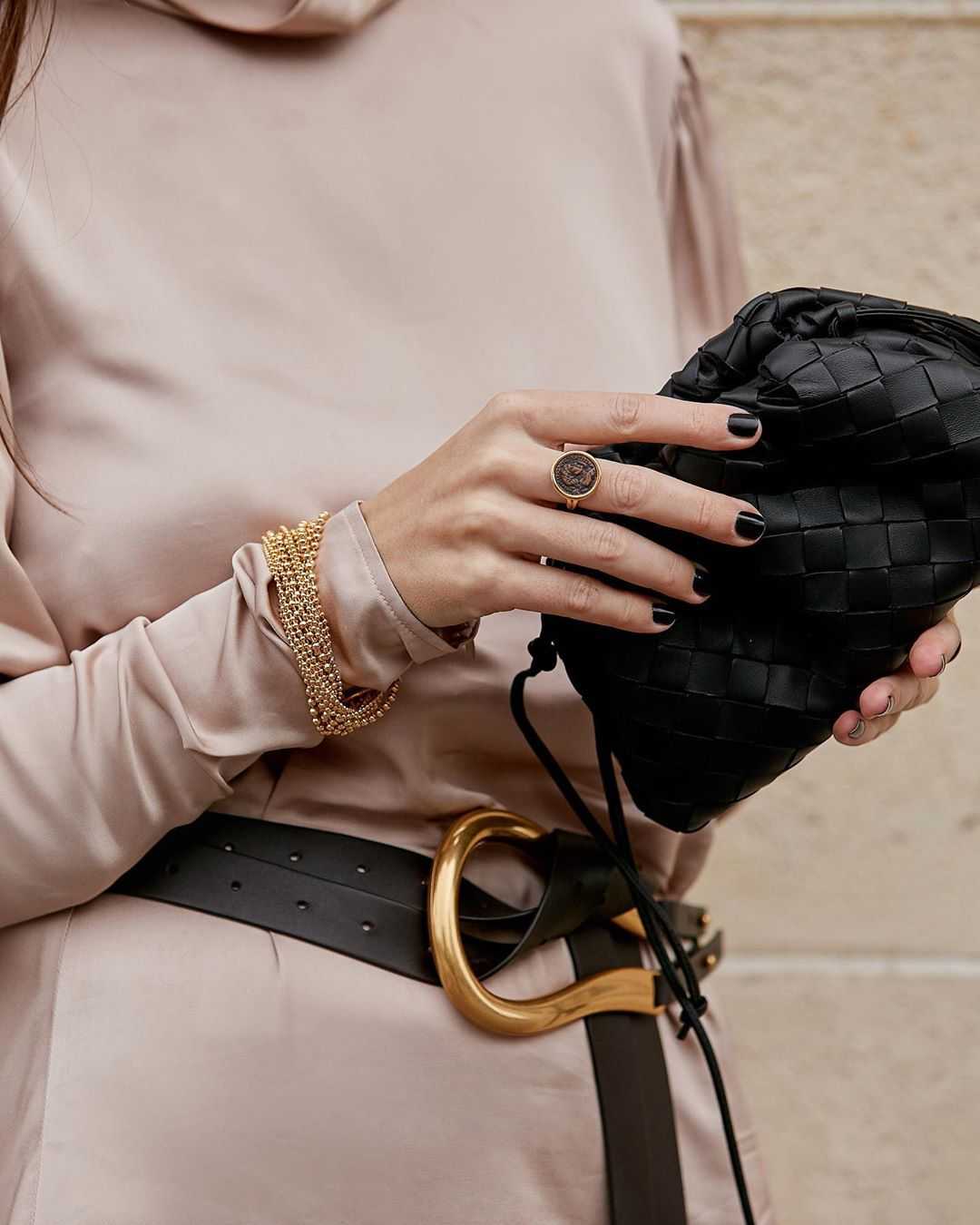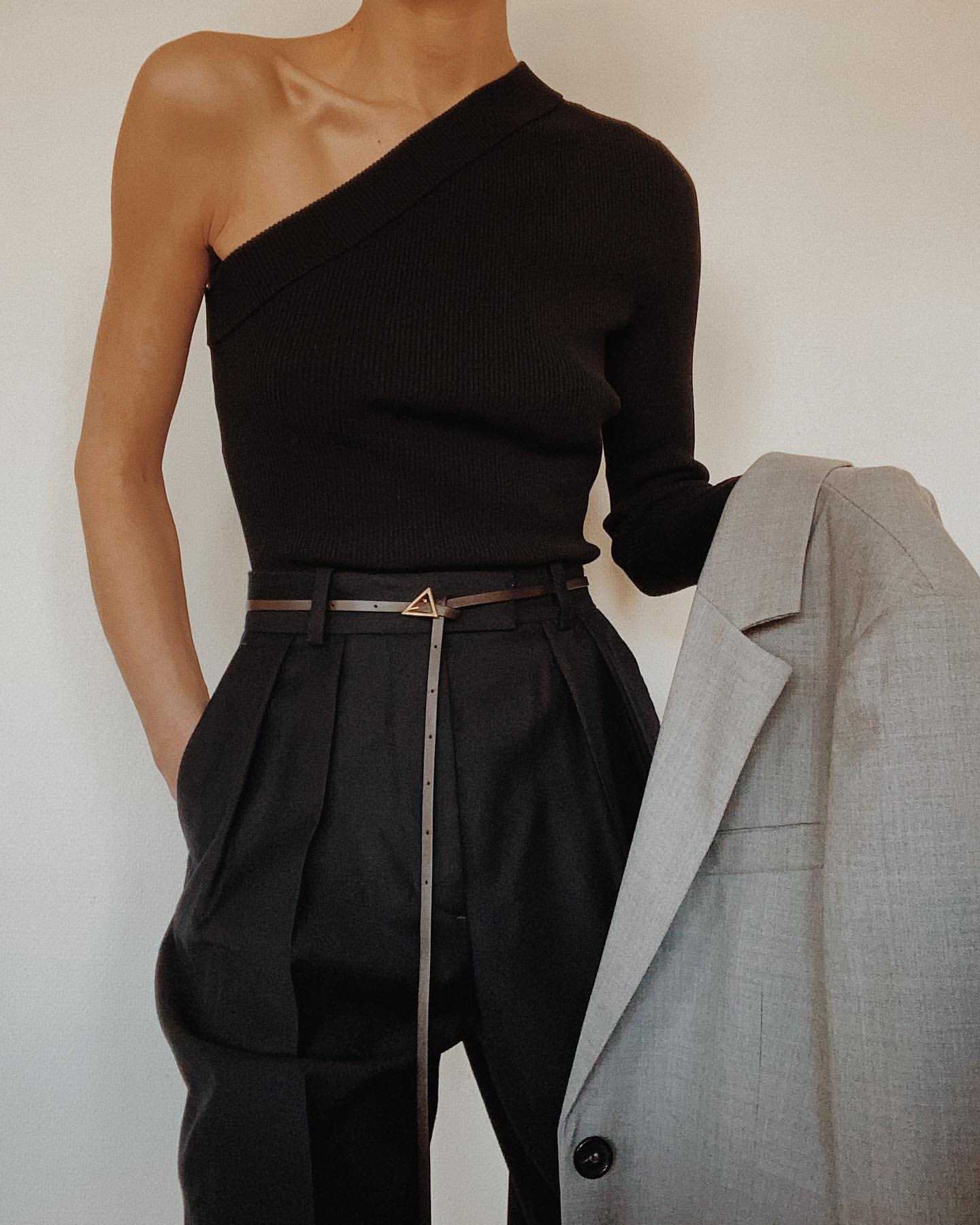 Тонкий ремень с узнаваемой треугольной пряжкой от Bottega Veneta — еще одна идея, которая ушла «в массы», такие ремни вы уже найдете в коллекциях массмаркетовых брендов. Photo: @modedamour