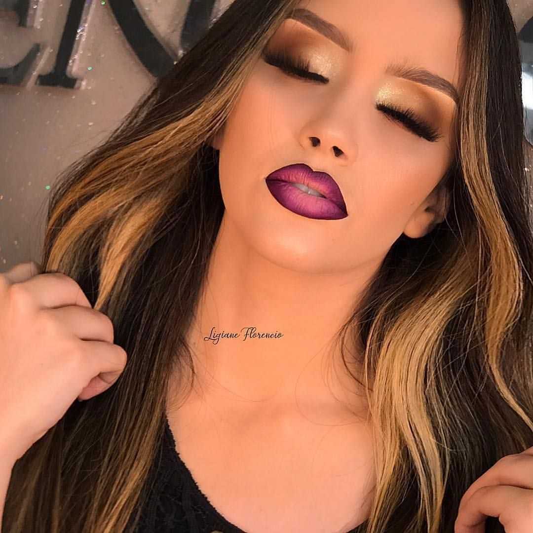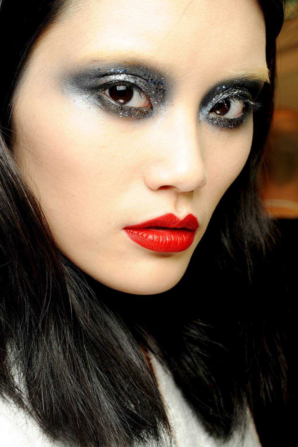 Еще одним трендовым цветом помады этой зимой стал фиолетовый. Фиолетовая помада идеально поможет создать таинственный и интригующий образ. Незаменимой такая помада будет в создании праздничного или вечернего макияжа. Не смотря на то, что в этом году трендовым макияжем для губ является нечеткое, немного размытое нанесение губной помады, пурпурный и фиолетовый цвета наносятся тонкой кистью, для того чтобы подчеркнуть четкий контур губ и сделать его более выразительным.