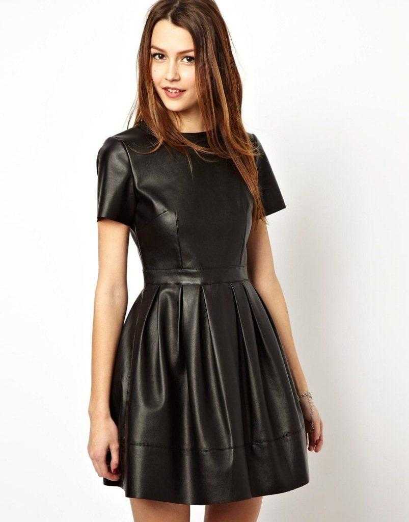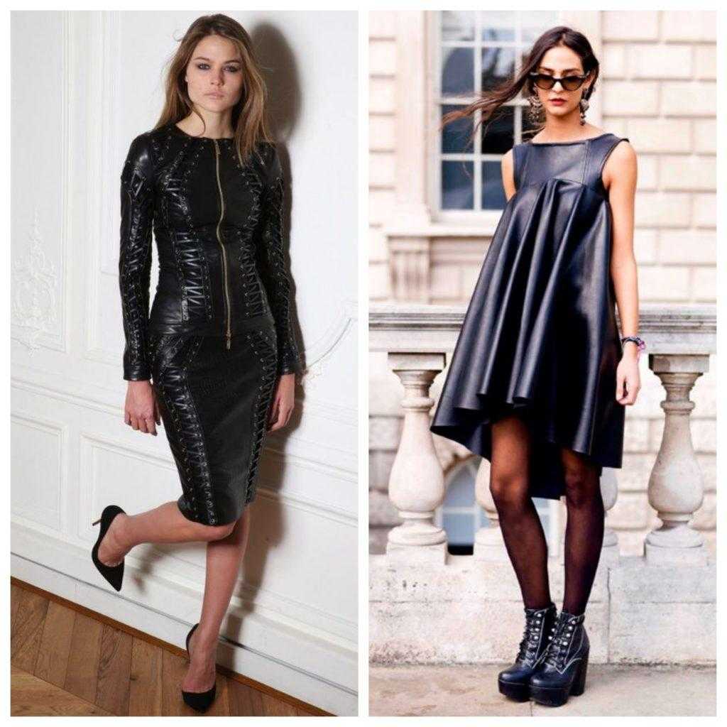 Одежда из кожи смотрится стильно и эффектно. Вот и чёрное платье не стало исключением. Универсальной моделью будет платье футляр длинны миди, оно подходит как делового образа, так и для повседневного образа. А вот кожаные платья с экстравертным декором, которые сидят плотно по фигуре, длинны выше колен будут лучшим выбором для экстравагантного образа.