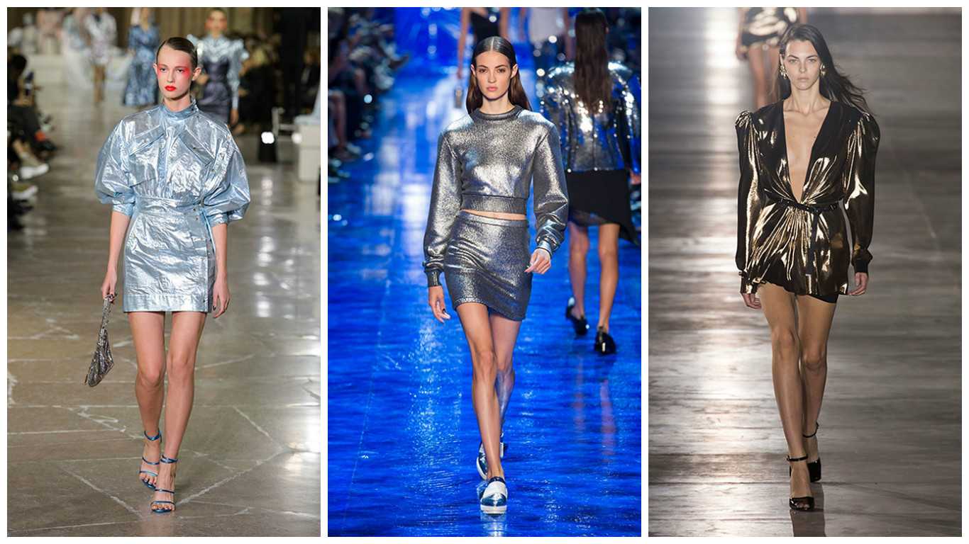 При создании новых коллекций использовались металлизированные ткани под золото, бронзу, серебро. Действительно эффектно выглядят наряды из таких материалов под лучами солнца. Если подобная ткань кажется слишком вычурной, можно выбрать вещи с вышивкой золотыми нитями, что также выглядит красиво и стильно.