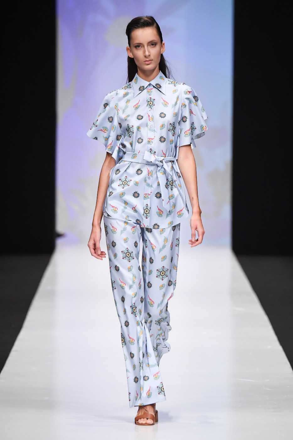 В тренде комплекты из платья с брюками или юбкой. Вдохновиться можно моделями из коллекций Alberta Ferretti, Balenciaga и Daks.
