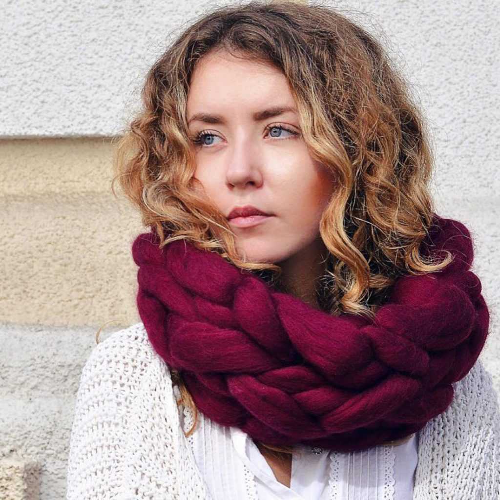 Можно самому связать красивую и стильную вещь. Предпочтение нужно отдать «деревенской» вязке – крупной резинке, объемным косам, переплетениям толстых нитей. Их рекомендуют носить как с вещами в классическом стиле, так и с пуховиком или зимней спортивной курткой.