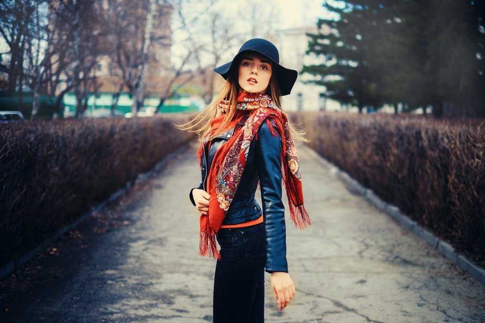 Кожаная куртка используется в межсезонье, когда ещё не слишком холодно, но уже и не тепло. Поэтому к ней подойдёт как тёплые объёмные шарфы (для вечеров), так и тонкие шёлковые или шифоновые, служащие в качестве яркого акцента. Следуя нижеперечисленным правилам, вы всегда будете в центре внимания.