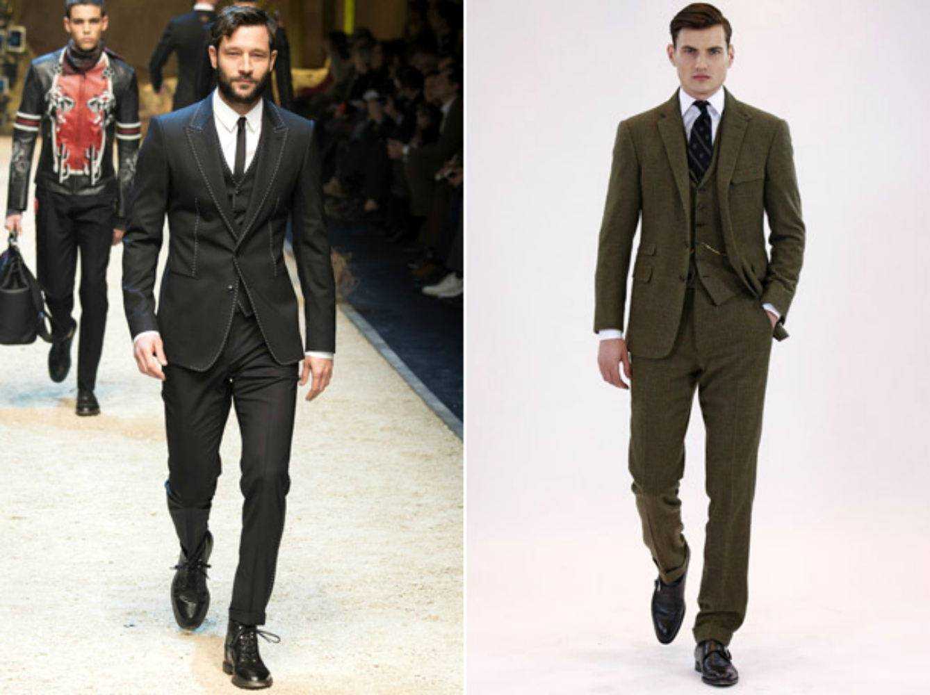 Для начала нужно определиться с типом костюма. Различают мужские костюмы двойки (пиджак и брюки) и тройки (пиджак, брюки, жилет) с однобортными и двубортными пиджаками. Классический и наиболее распространенный вариант — это однобортный костюм-двойка. Двубортные костюмы относят к так называемой старой школе и сегодня используют довольно редко.