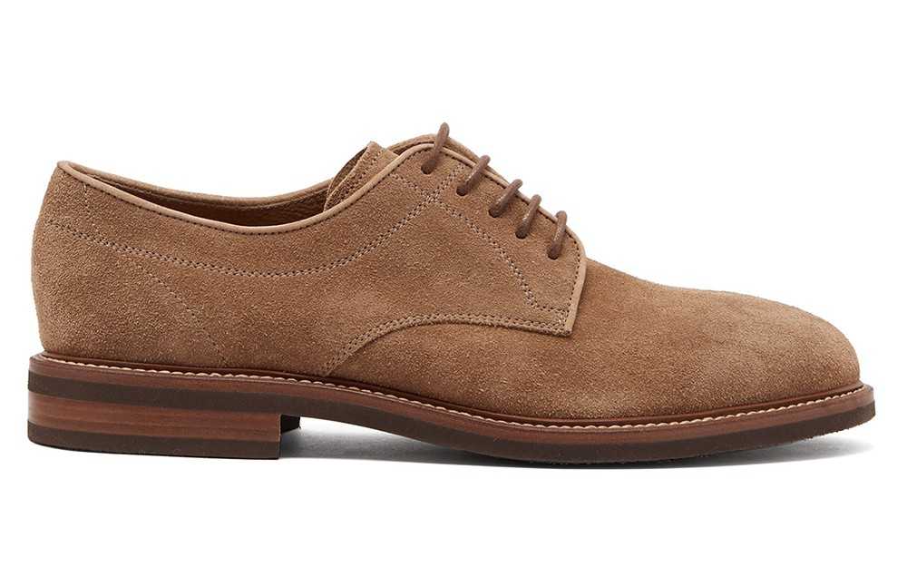 Дерби (англ. derby shoes) – название было выбрано в честь графа Дерби. Он не любил закрытую шнуровку туфель и изобрел открытую. В Англии дерби называли — «блюхерс» в честь генерала прусской армии, участвовавшего в бою при Ватерлоо. Но все же «дерби» более распространенное название этой изящной обуви на небольшом каблуке со шнуровкой открытого типа. Открытая шнуровка делает дерби менее формальными, позволяя легко надеть обувь (так как есть возможность шире ее раскрыть). Дерби по отсутствию или присутствию делятся на два вида: просто дерби – нет дырочек, броги-дерби – есть перфорация.