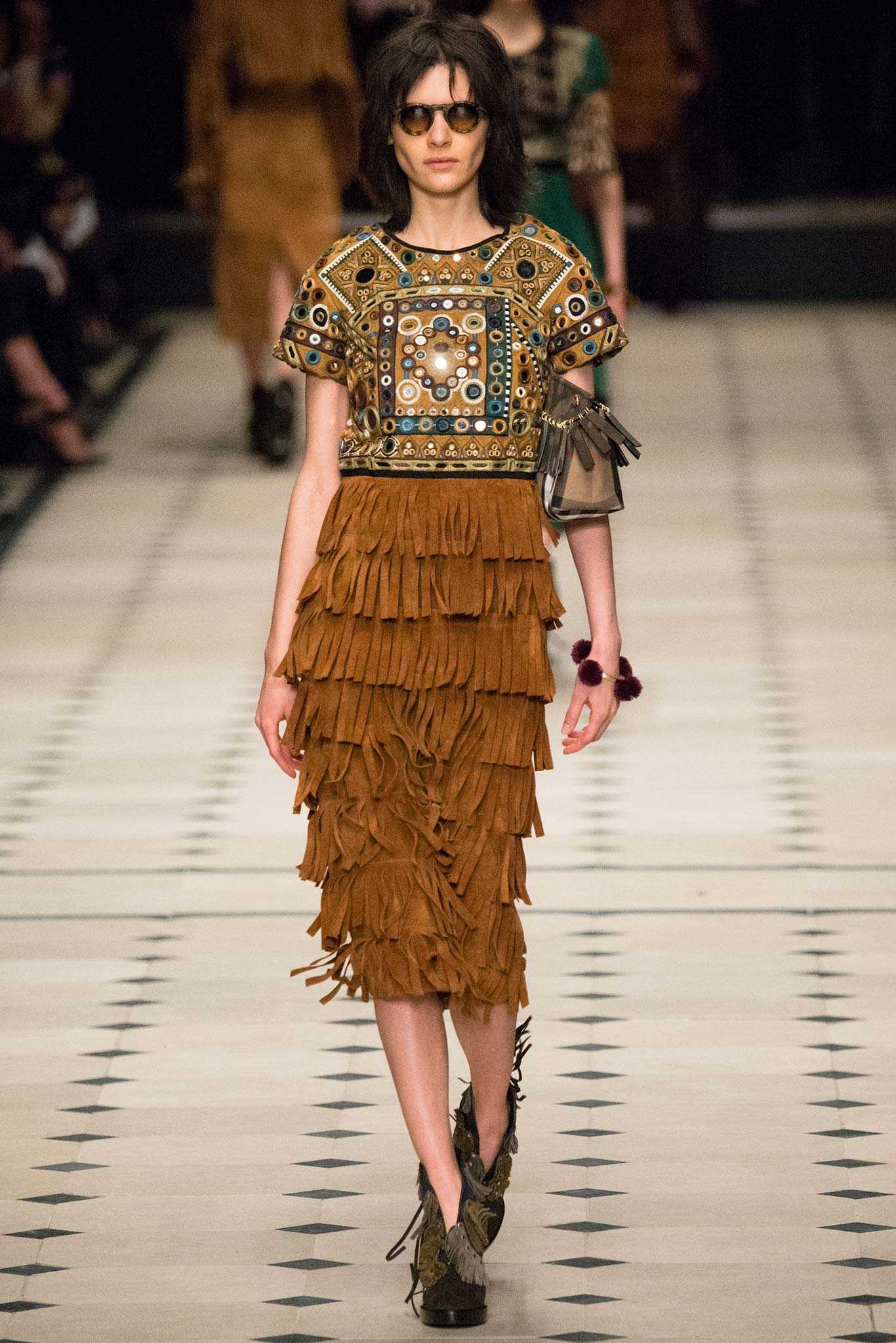Красиво смотрятся наряды, на которых бахрома расположена ярусами. Они могут быть горизонтальными или наклонными. Такая бахрома при движении начинает покачиваться, что создает интересные визуальные впечатления. Эти платья вполне пригодны и для дневного пользования.