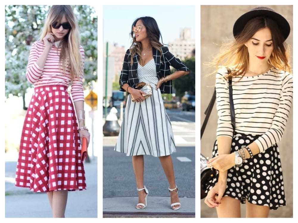 Стилисты подсказывают, что сейчас в тренде тандем одинаковых геометрических узоров разного размера или цвета. Так, мелкий горошек легко подружится с крупным, узкая полоска, которая стройнит, отлично сочетается с более широкими линиями. Интересно будет выглядеть и пара черно-белой и цветной клетки.