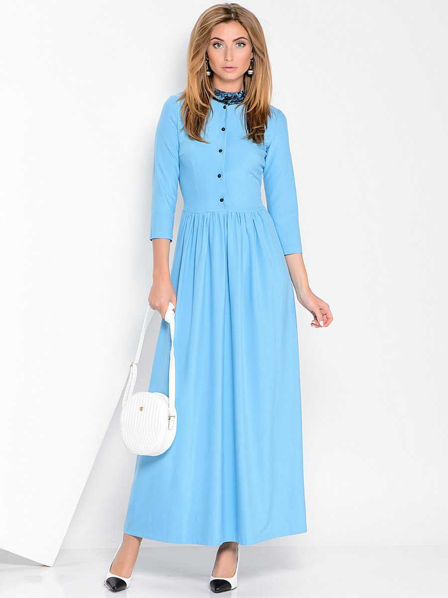 Можно выбирать модель с длиной чуть выше колена или наоборот, ниже. Декольте в таких моделях почти не встречается. Так что если вы любите открывать зону декольте и плечи, то лучше выбрать другую разновидность однотонных нарядов.