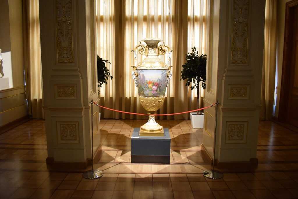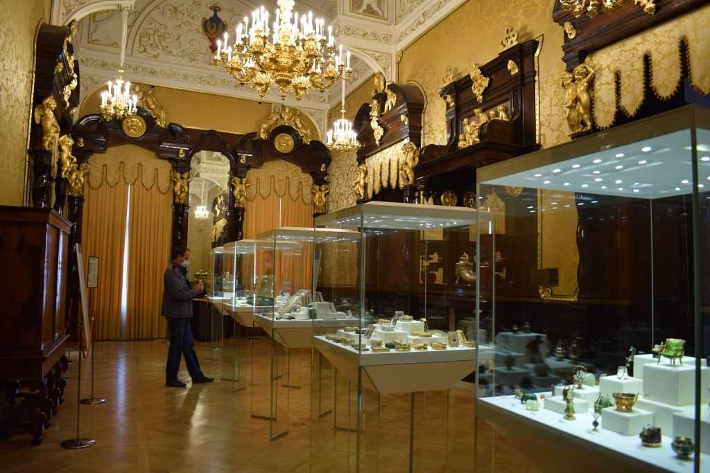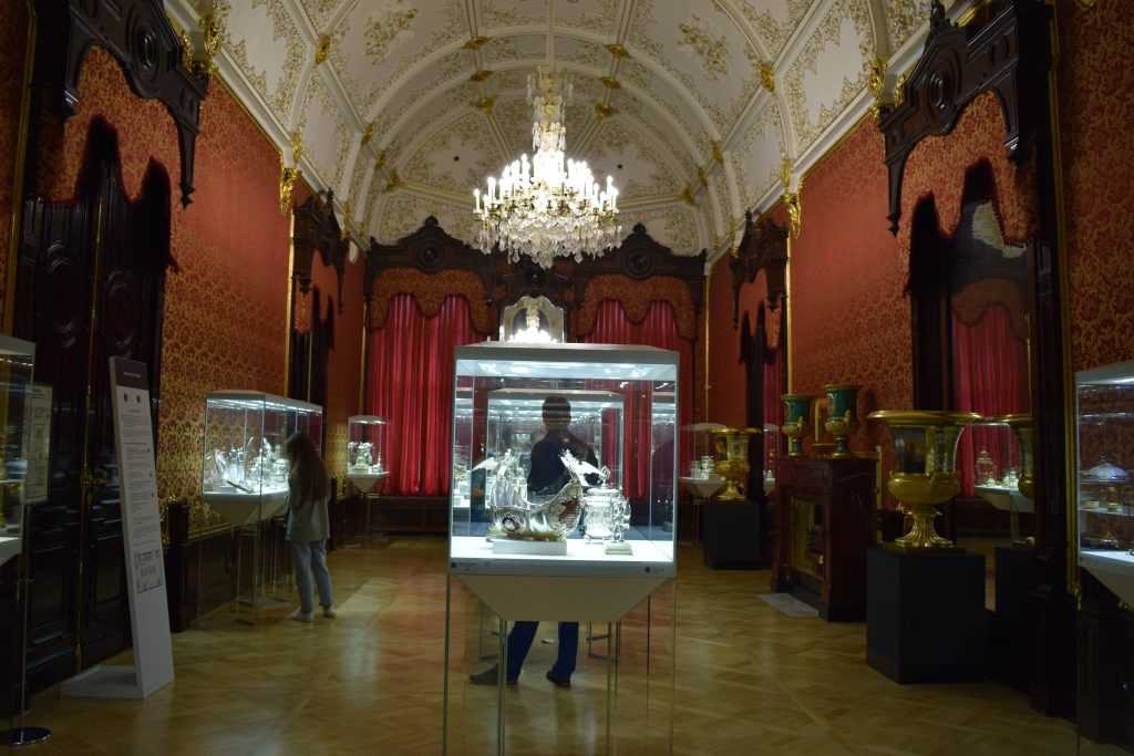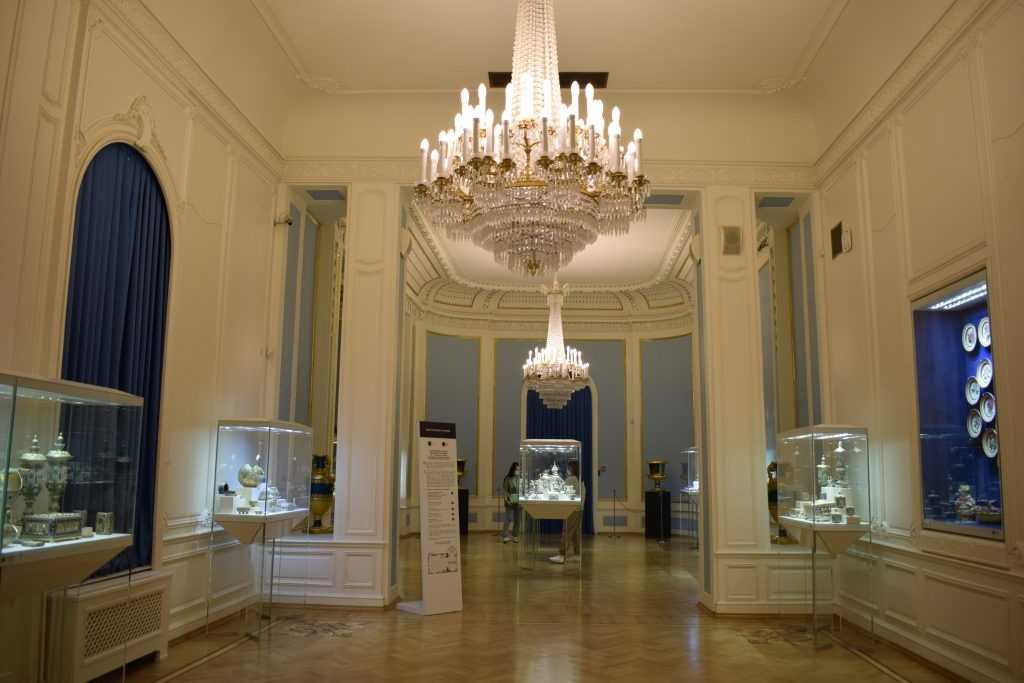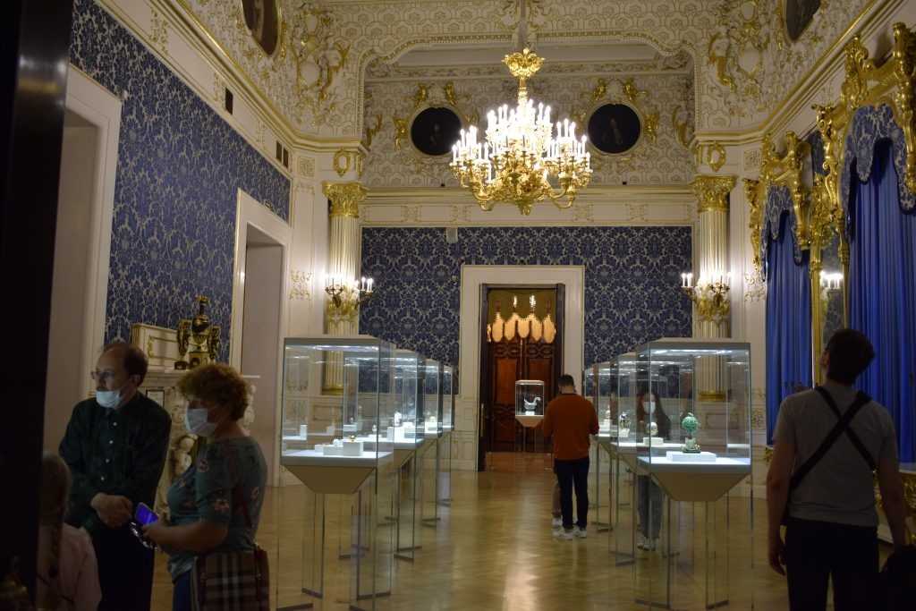 А еще мне запомнились Красная, Синяя, Золотая гостиные, Готический зал, Верхняя буфетная с большой вазой. Все они изображены по порядку на фотографиях ниже. Надо сказать, особое место среди залов занимает Синяя гостиная. В ней демонстрируются главные экспонаты музея — пасхальные яйца Фаберже.