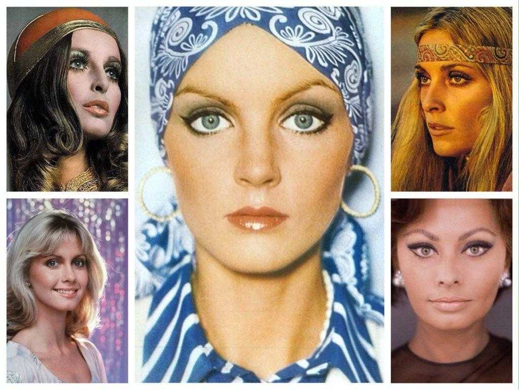 Не менее разнообразными в этот период были прически. Они могли сочетать в себе стрижку с мягкими волнами или химической завивкой. В начале десятилетия популярными были длинные волосы, как у хиппи.