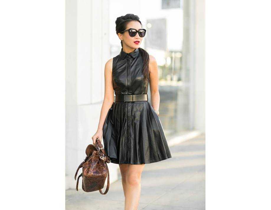 Важное примечание: кожаные платья в 2021 году должны быть строго из эко-кожи, использование которой не подвергает животных убийствам. Кожаные платья имеют всевозможные фасоны: в форме длинной рубашки, в форме удлиненной кожаной куртки, с кожаным низом и тканевой юбкой снизу