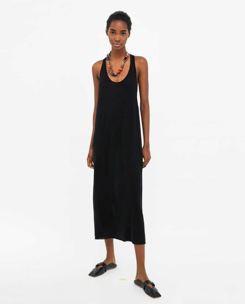 - Длинное – до щиколотки или в пол. Обычно имеет приталенный покрой. В этой модели встречаются небольшие или глубокие разрезы спереди, сзади, по бокам. Походит для летних прогулок, походов на пляж. Сочетается со шлепанцами, босоножками, слипонами.