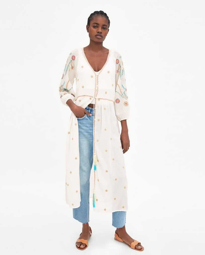 Сочетание платья-рубашки с джинсами — из необычных, в духе уличной моды — не каждой девушке придет в голову надеть под платье брюки. Но этот вариант все же имеет право на существование. Кристин Сентенера – редактор австралийского Vogue, даже рубашку макси длиной практически в пол комбинирует с джинсами и выглядит очень элегантно.