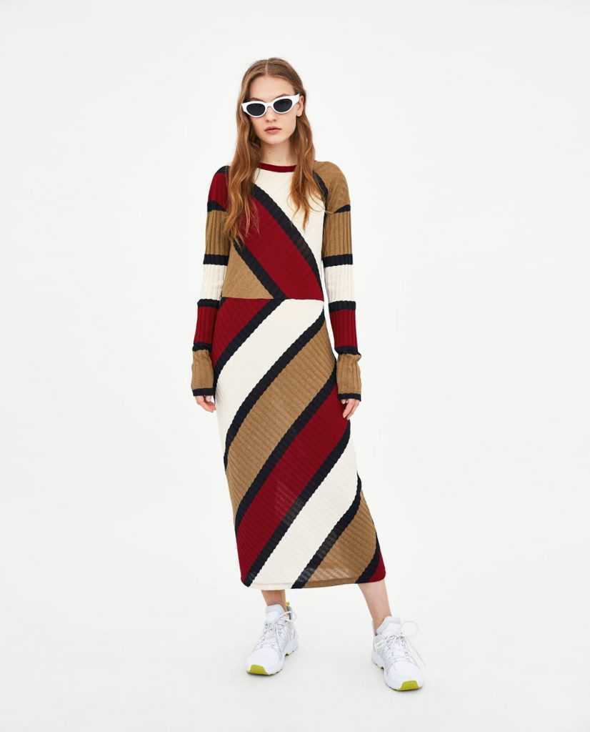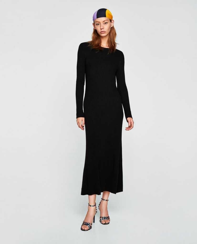 Для зимы идеально подходят длинные вязаные платья. Их можно объединить с пальто или короткой шубой. Вместо них можно использовать утепленные кожаные куртки или меховые жилеты. Обувь лучше выбирать невысокую (полусапожки или ботинки) с массивной подошвой.