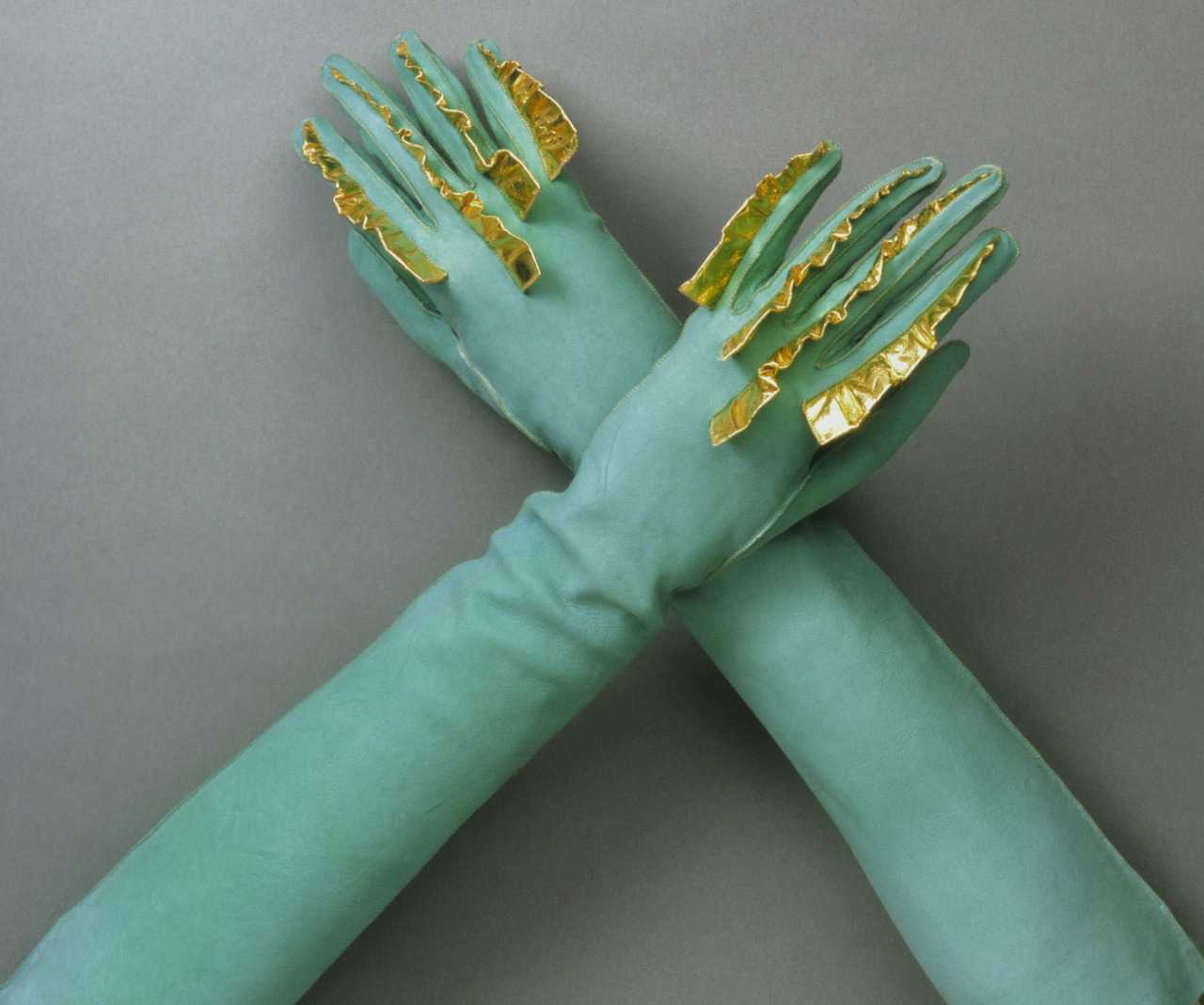 Все внимание публики было приковано и к необычным пуговицам, выполненным в форме гимнастов, выполняющих упражнения на трапециях. Перчатки прекрасных дам, ходивших по подиуму, напоминали гетры, а шляпы – перевернутые рожки мороженого