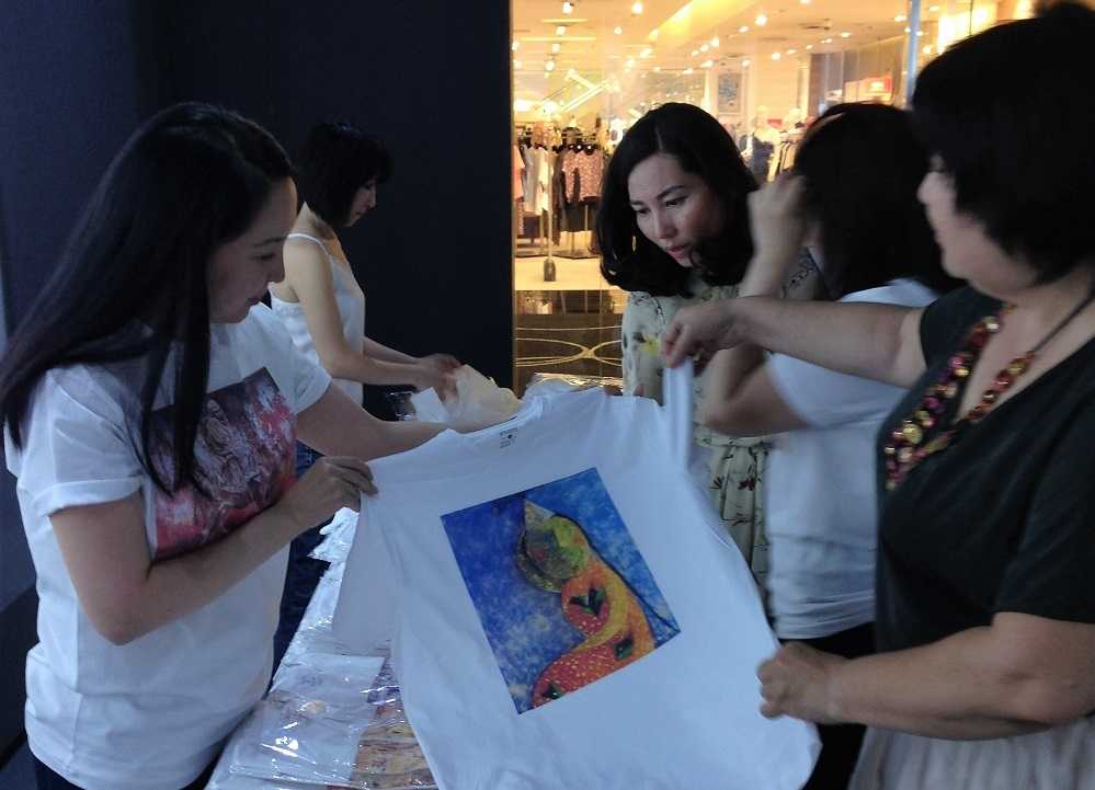 «Мы для себя назвали этот проект «Передвижной выставкой», то есть люди, передвигаясь в наших футболках по городам и странам, показывают наше казахстанское искусство. Проект очень хорошо «зашел», причем принты с национальным колоритом пользовались большим спросом, чем, допустим, цветочные, или какие-то портреты и т.д. Я думаю, успех объясняется тем, что, во-первых, люди хотят поддерживать своих, казахстанских производителей, и, во-вторых, это реальная альтернатива традиционным сувенирам из Казахстана – войлочным верблюжатам, коньяку и шоколаду. Тем более, что наши вещи более информативны, на каждой указан автор работы, которая стала основой для принта. И если вы подарили такую футболку своему зарубежному другу,  надевая ее, он будет распространять информацию о нашей стране, об искусстве Казахстана – через вот такую передвижную выставку», — сказала она.