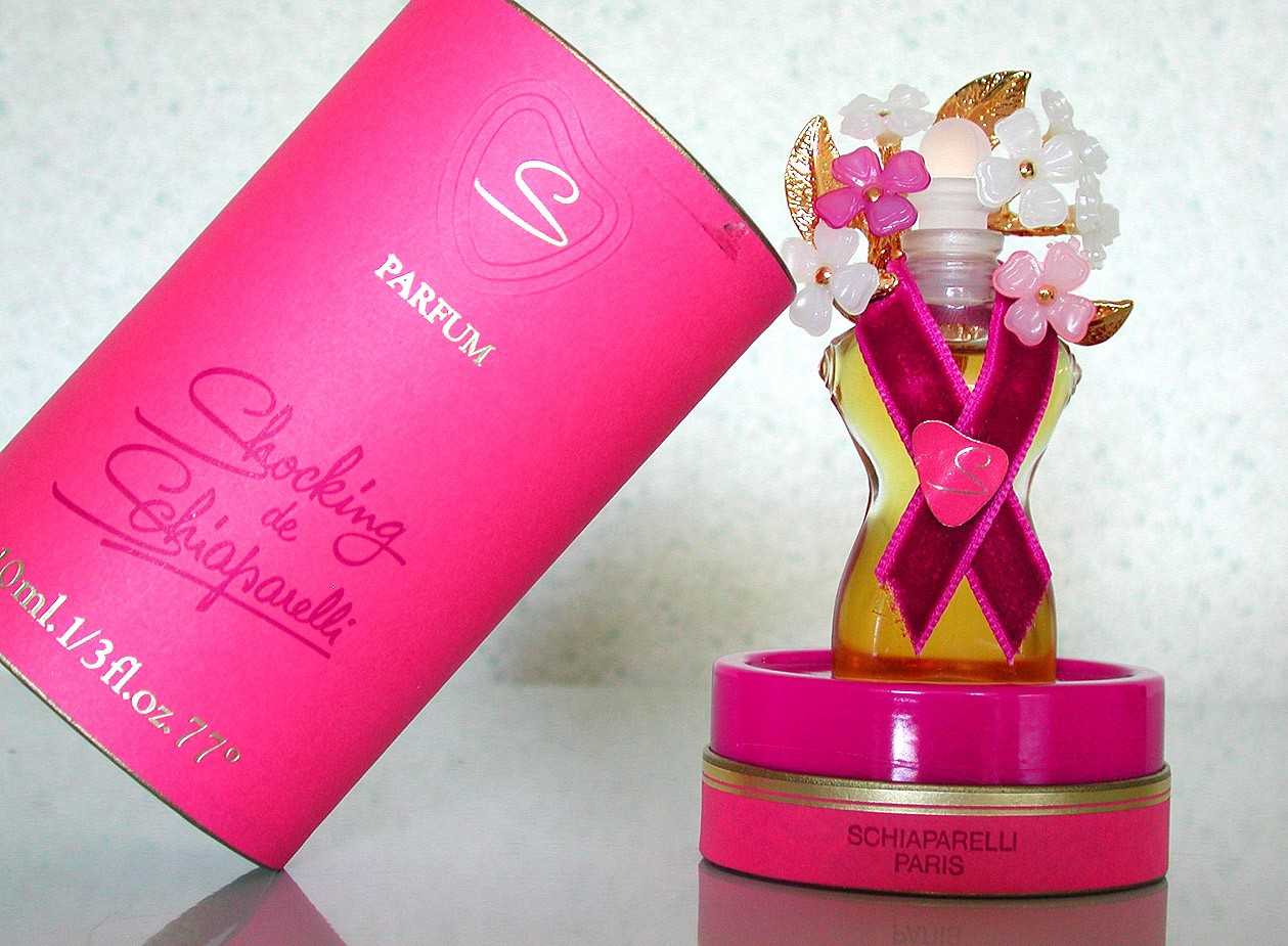 Именно Мэй Уэст вдохновила художницу Леонор Фини на создание флакона для первых духов Скиапарелли — легендарных «Shoking». Парфюм был презентован в 1937 году и стал совершеннейшим открытием. Флакон был выполнен в форме знаменитой фигуры Мэй Уэст в позе Венеры Милосской и помещался в коробочку насыщенного розового цвета фуксии. Позднее Эльза назвала его «shocking рink» в честь своего парфюма, а сам цвет был зарегистрирован ею в качестве торговой марки и стал фирменным знаком Эльзы Скиапарелли. Она восхищалась этим цветом, говоря о нём: «Цвет сам попался мне на глаза — блестящий, невероятный, нескромный, пленительный, полный жизни, подобный свету, объединённый цвет, цвет всех птиц и рыб в мире, цвет Китая и Перу, совсем не западный, шокирующий, чистый, интенсивный…».