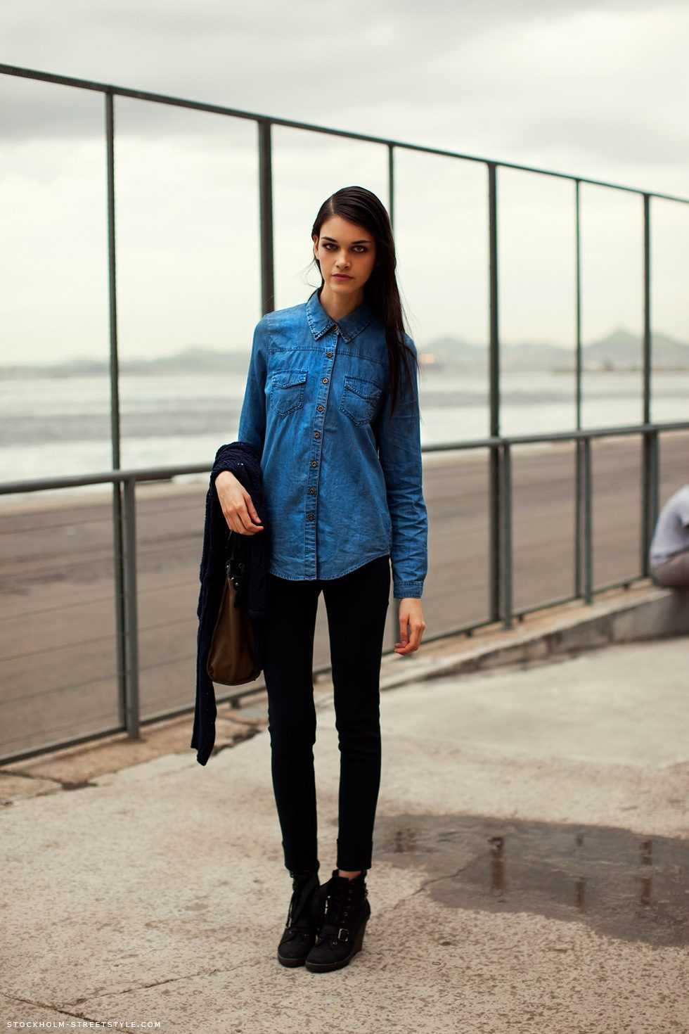 Несомненным фаворитом 2018 считается черная джинсовая рубашка, которая благодаря особому свойству этого оттенка сглаживать линии и угловатость фигуры понравится многим модницам.