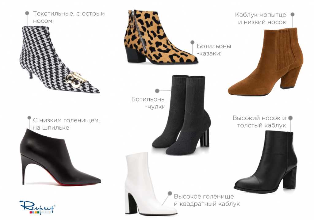 Ботильоны разных моделей вписываются в главные тренды модной женской обуви осень-зима 2020-2021. Форма мыса, каблук, высота, цвет, принт и наличие декора – все эти детали стоит учитывать при выборе модных ботильонов 2020-2021. В модном сезоне 2020-2021 девушки и женщины выбирают следующие варианты: