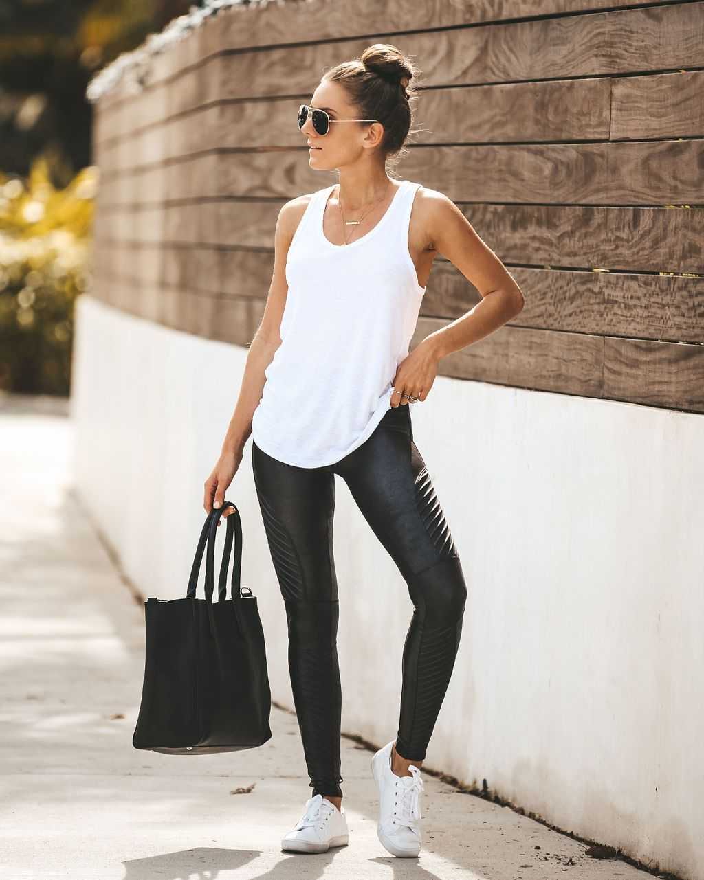 Модные образы с кожаными леггинсами фото 2022 примеры