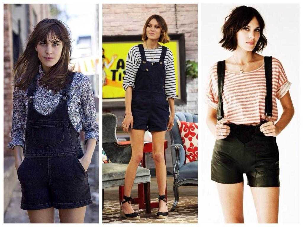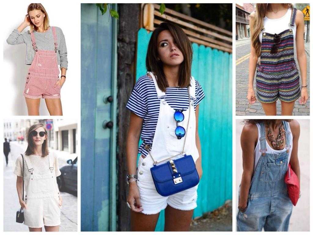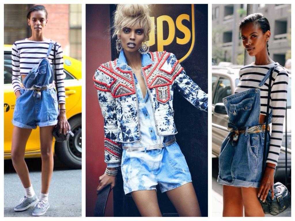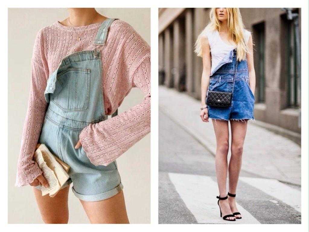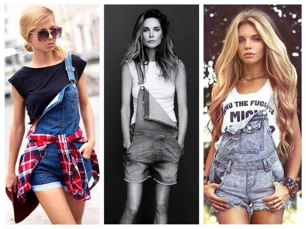 Чаще всего такие шорты сочетают с одеждой белого цвета, но возможны и более необычные варианты – рубашка с цветочным принтом, полосатая футболка, черная майка с фото любимой группы. Некоторые модели комбинезонов не требуют подбора дополнительных элементов и могут одеваться на голое тело.