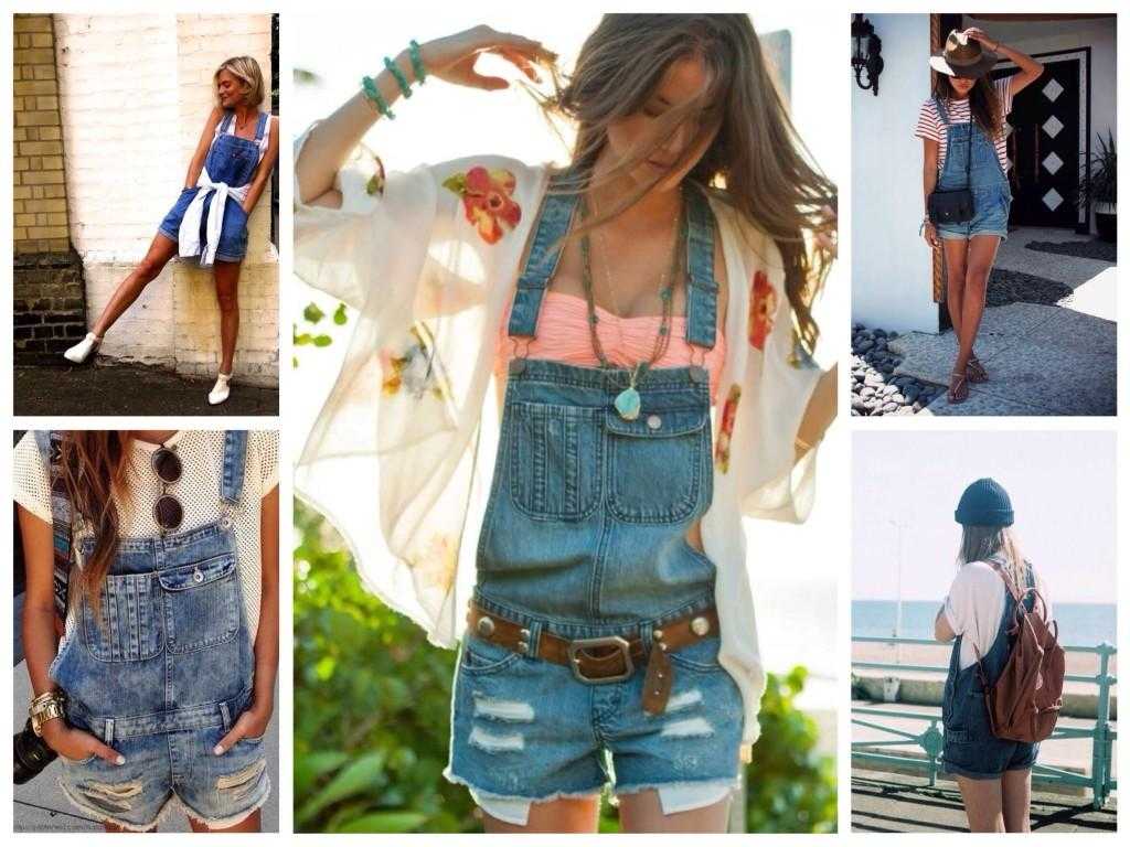 Думая, с чем носить джинсовый комбинезон, можно использовать принципы подбора одежды под шорты. Уместны облегающие или свободные топы, рубашки, футболки разной длины. Попробуйте отстегнуть одну лямку комбинезона и спустить ее на бедро.