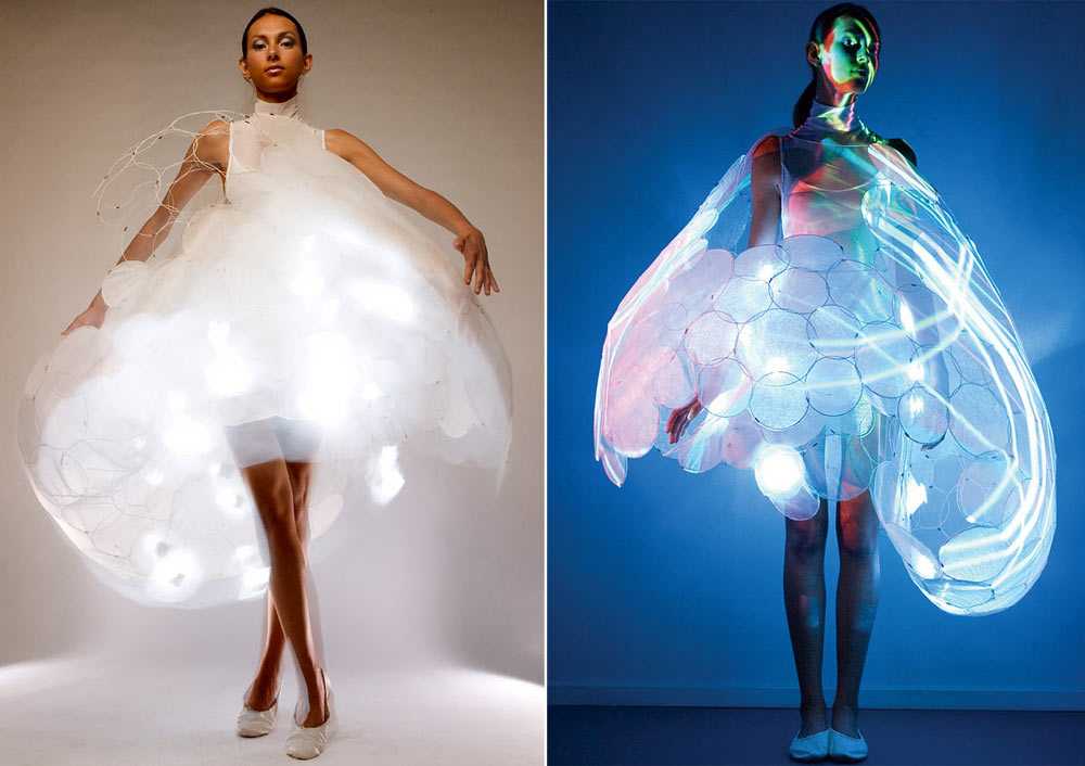 Как правило, дизайнеры создают такие платья, чтобы привлечь к себе внимание, эти коллекции не пользуются спросом. Но если вам хочется выделиться и выглядеть необычно, почему нет? Смотрите далее реальное фото с церемонии бракосочетания. И, конечно же, не можем обойти стороной Полину Гагарину с ее светящимся платьем со светодиодами на Евровидении-2015