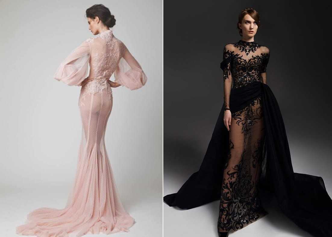 Платье, облегающее шею, создает скромный образ, сквозь который пробиваются завуалированные нотки сексуальности. Однотонная плотная ткань подчеркивает строгость и сдержанность, а мягкие кружева вносят свежесть, воздушность, игривость и женственность.