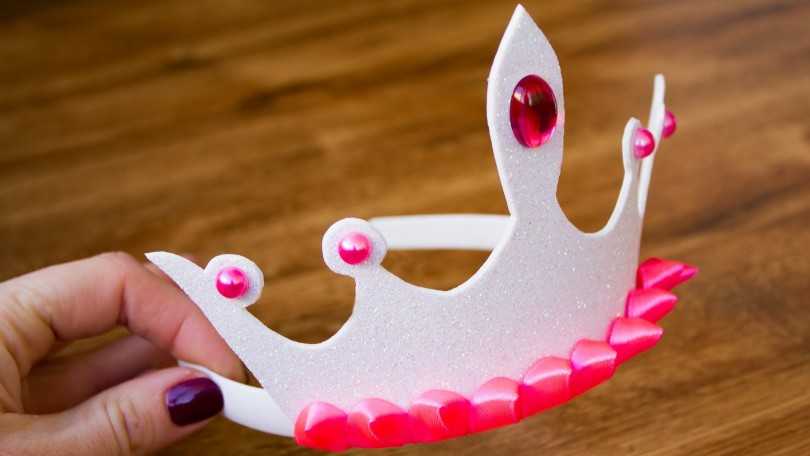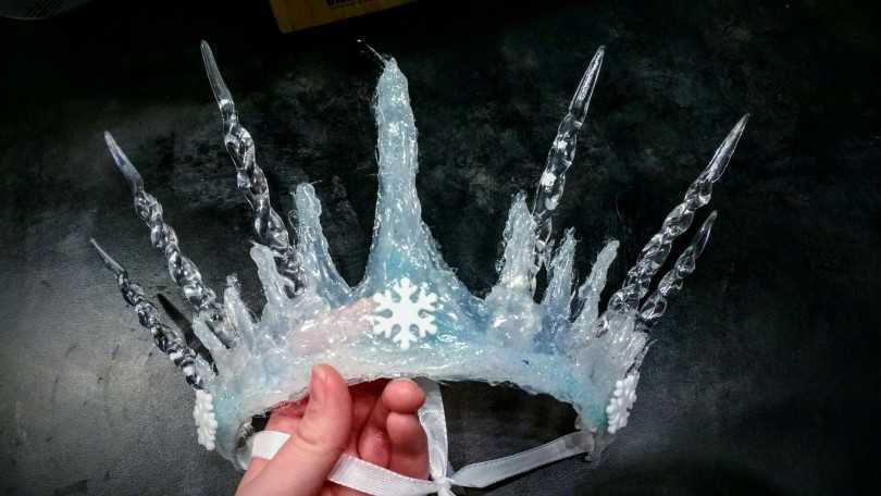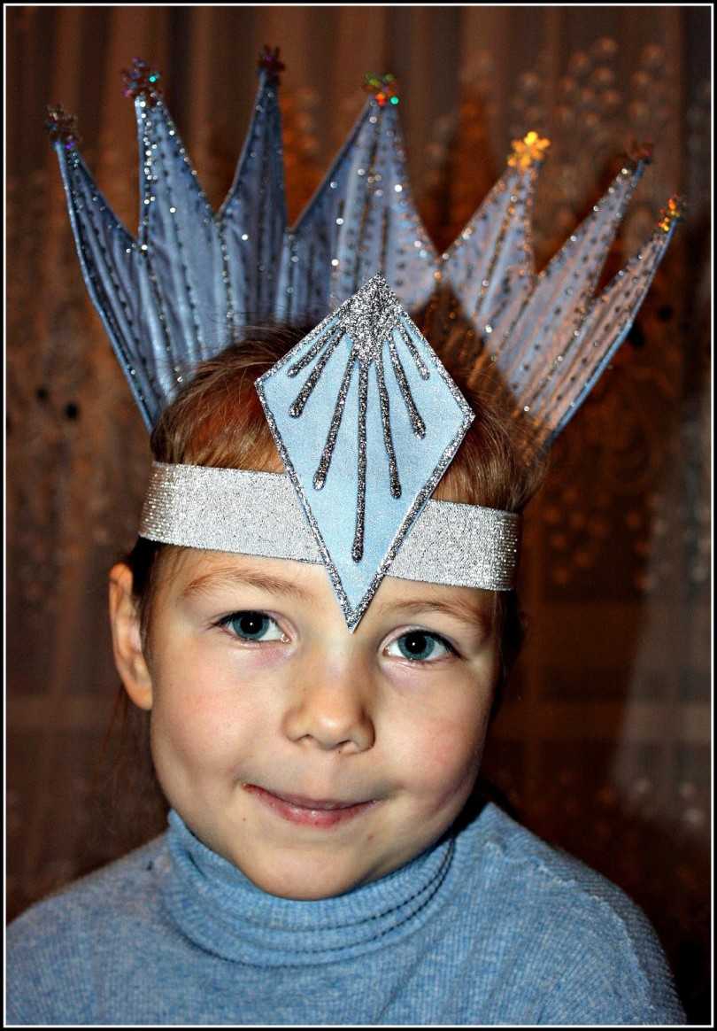 Из фоамирана легко сотворить невероятные невысокие ажурные короны-диадемы. Широкая линейка цветов обязательно позволит выбрать наиболее подходящий. Для роли правительницы зимы подходит серебристый и блестящий. Сырье плотное, качественное, легко обрабатывается.