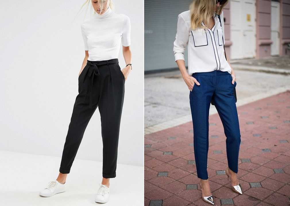 - Классические брюки. Универсальная вещь. Выбирайте свой фасон. Лучше отдать предпочтение брюкам с высокой талией, которые сделают из вас «барби с идеальной талией».