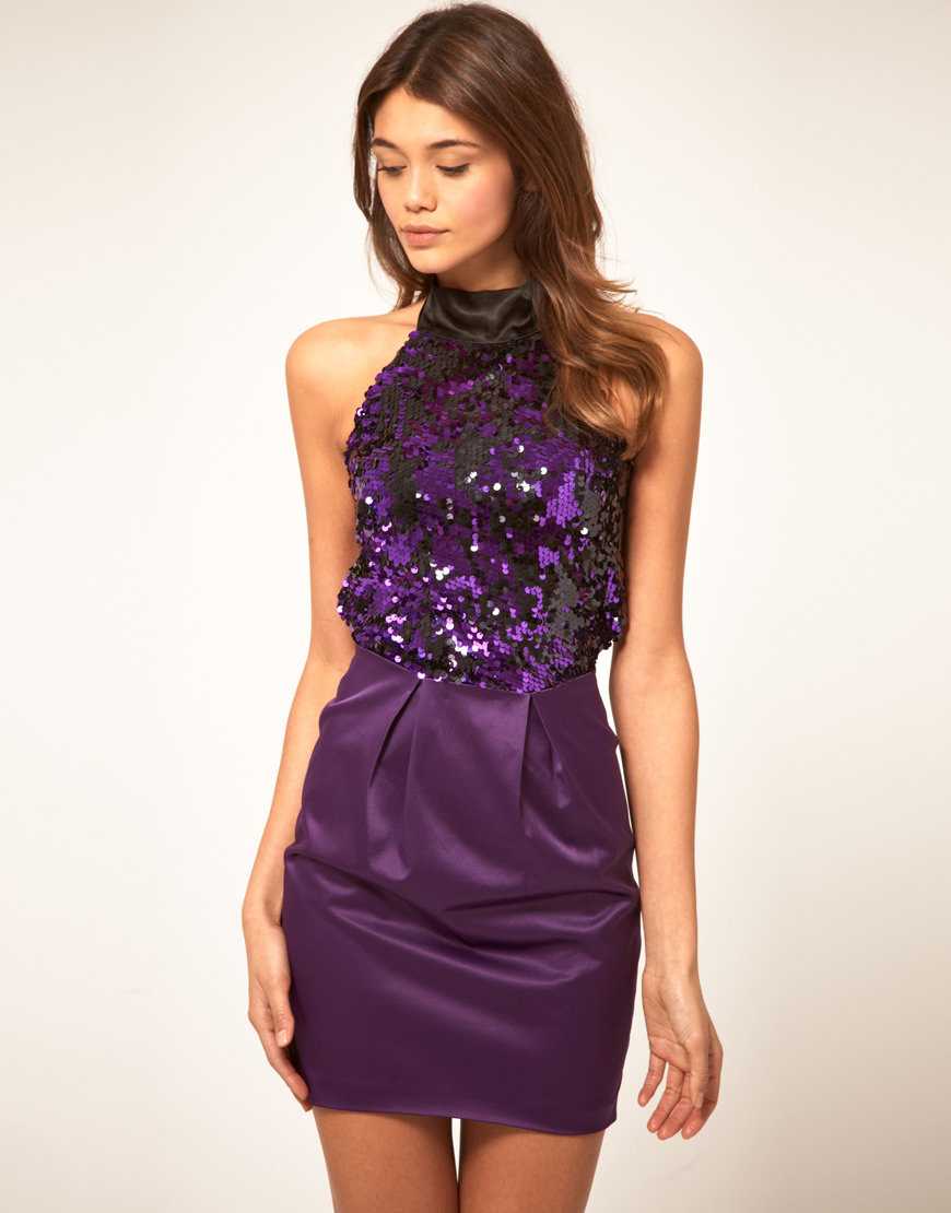 Наиболее выделяется яркий электрик, в союзе с пайетками он производит потрясающий эффект. Синее платье требует сдержанных аксессуаров, к примеру, черных или бежевых лодочек, неброской бижутерии под золото.