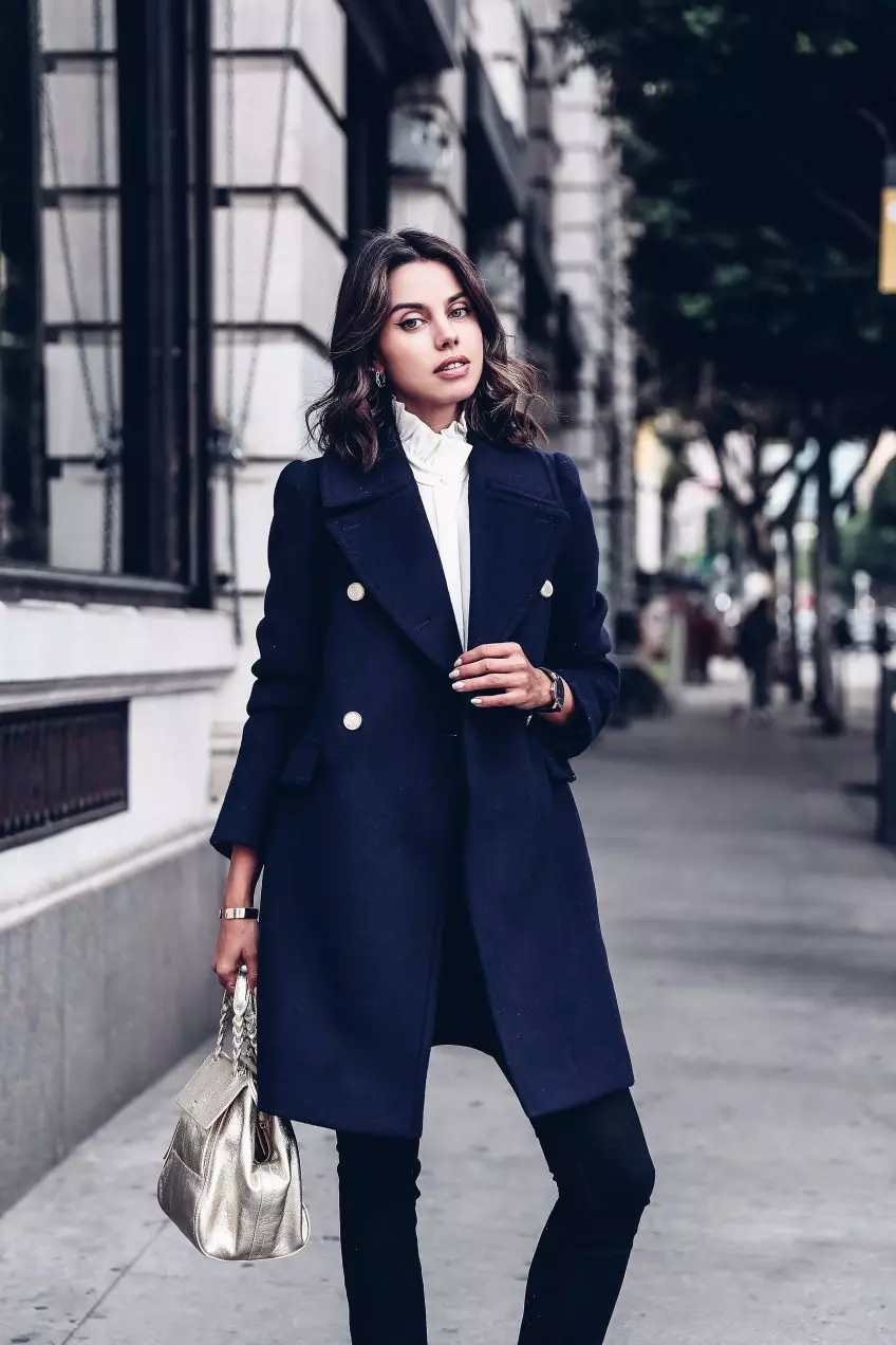 А генералиссимус среди пальто-милитари – красивое пальто цвета navy blue, классика военно-морской стилистики. Темно синее пальто хорошо сочетается с чёрным, серым или золотым цветом.