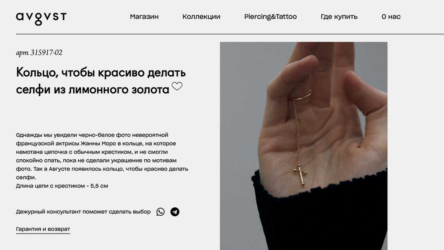 Скриншот: сайт Jewelry in Avgvst / Skillbox Media