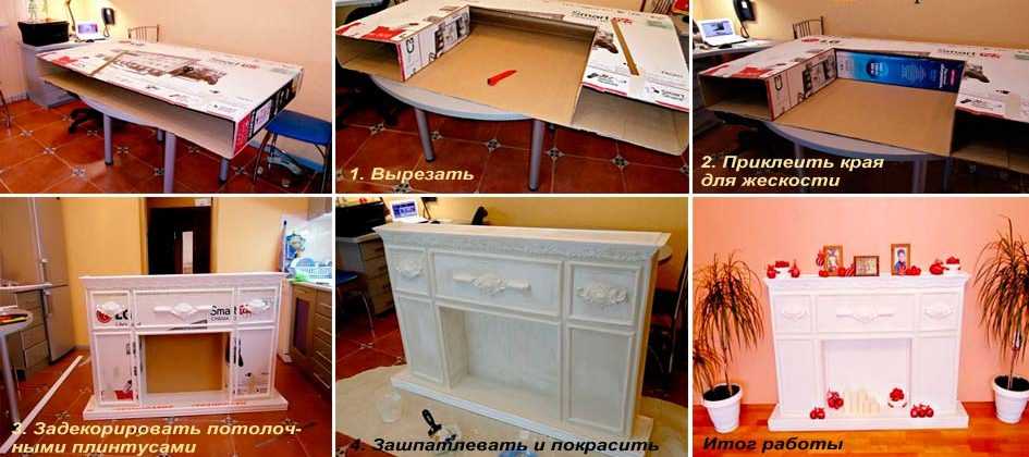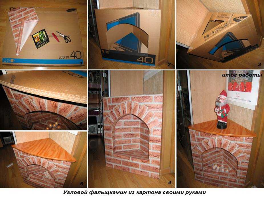 Но как же быть тем, у кого камина нет? Ведь в городских условиях создать такую конструкцию удается не каждому. Смастерите сами или закажите в мастерской декоративный камин, огонь в котором можно развести при помощи свечей или просто электрических гирлянд. Красивый элемент декора часто делают из картона. Такой камин будет радовать вас не долго, однако нужное настроение уюта создаст непременно.