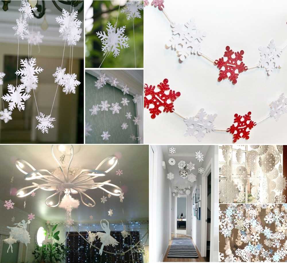 Новогоднее оформление квартиры в виде бумажных звезд и снежинок по-прежнему актуально. Такие праздничные аксессуары легко изготовить, а выглядеть они могут очень креативно.