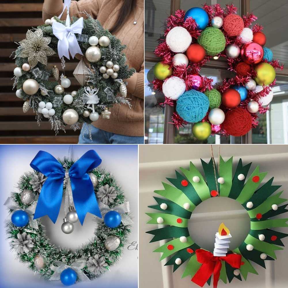 Воспользуйтесь рождественскими американскими традициями, которые благодаря фильмам уже давно прижились в нашей стране. Сделайте венок, призванный украшать межкомнатные и входные двери вашего дома — один из символов Нового года, часто встречающийся в западной культуре. Этот декоративный элемент можно сделать из разных материалов: клубков ниток, искусственной и настоящей хвои, мишуры, шаров, бумаги, шишек. Перед вами только несколько вариантов такого украшения.