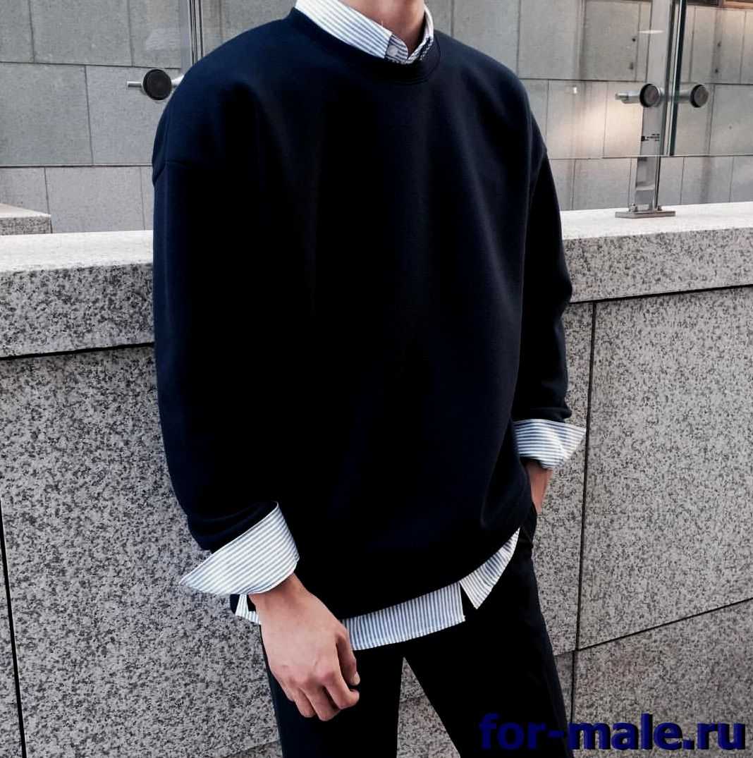 В мужском гардеробе качественная толстовка из натуральных материалов служит базой. Ее можно носить под костюм в качестве сорочки. Расслабленный наряд в стиле «городской шик» сложится при наличии темной толстовки, пиджака и узких брюк.