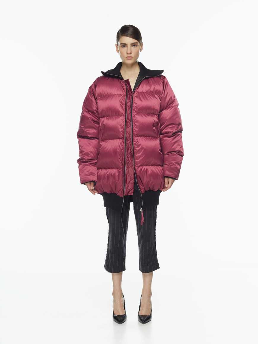 Второй вариант — это куртка в спортивном стиле, соответствующая тенденции теквир. Иначе говоря, это «технологичная» одежда. Если никогда не слышали о таком стиле, обязательно стоит изучить новинки с фото. Под нее можно надеть теплую водолазку или толстовку, если хочется создать спортивный образ. В обоих случаях лучше всего подойдут брюки прямого кроя темного цвета.
