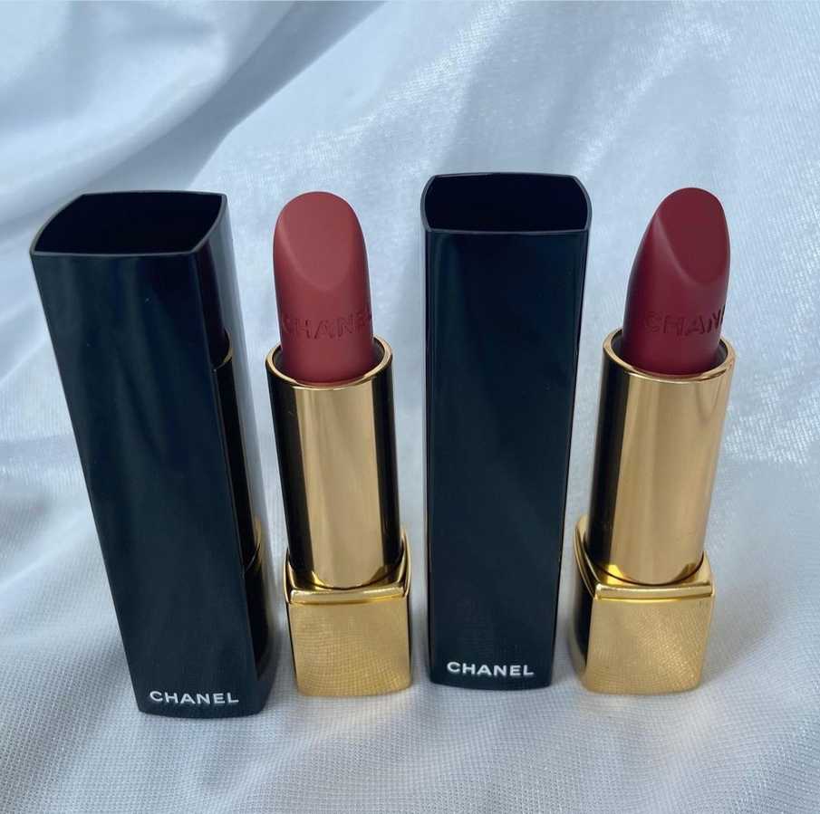 Матовая помада Rouge Allure Velvet Fall-Winter 2021. Сверху вниз: 1) оттенок 74; 2) оттенок 75. Скрин из соц.сетей.